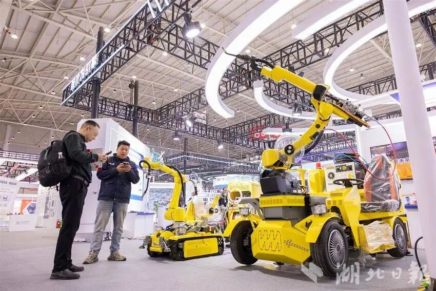 12月12日,观众在参观一款六轴机械臂产品。(湖北日报全媒记者 柯皓 摄)