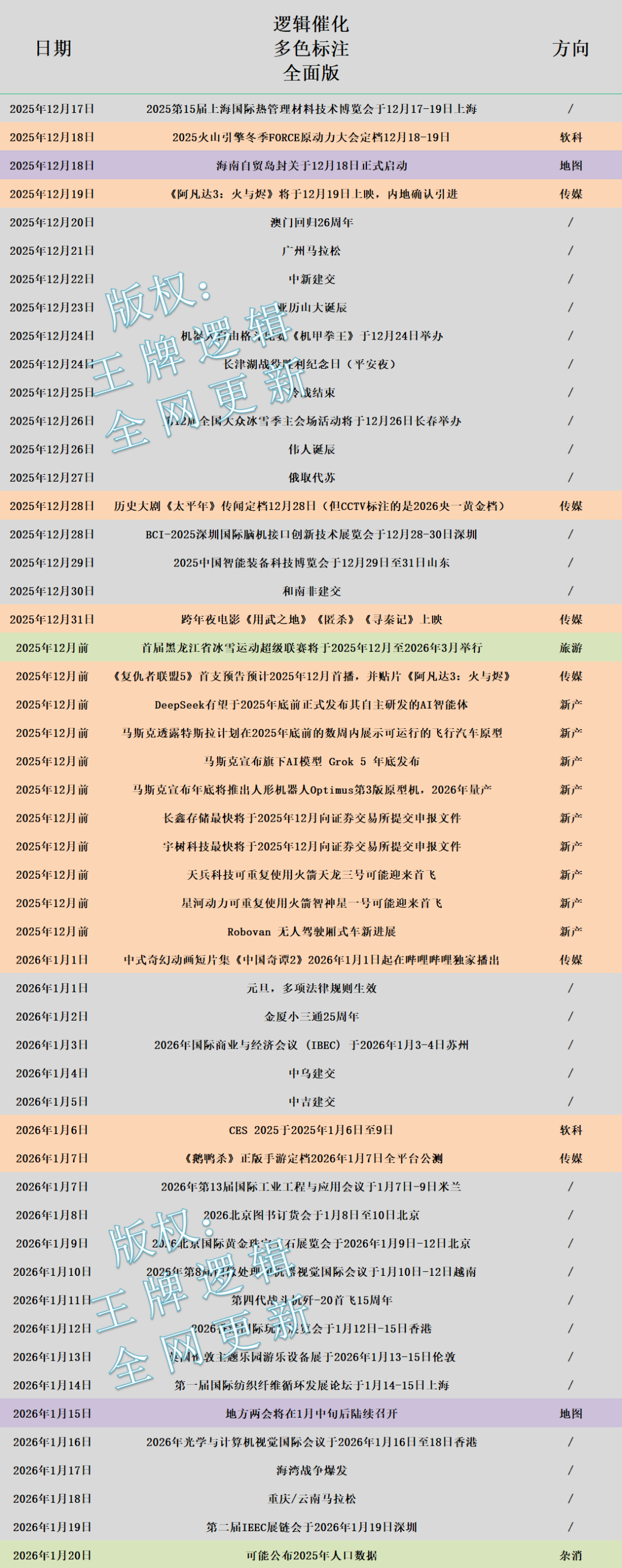 至于2026的重大题材梳理,我们8月就发布过一个版本,10月修改补充了一个版本,很全面了,今天12月底的这篇,算最终的总结概括。