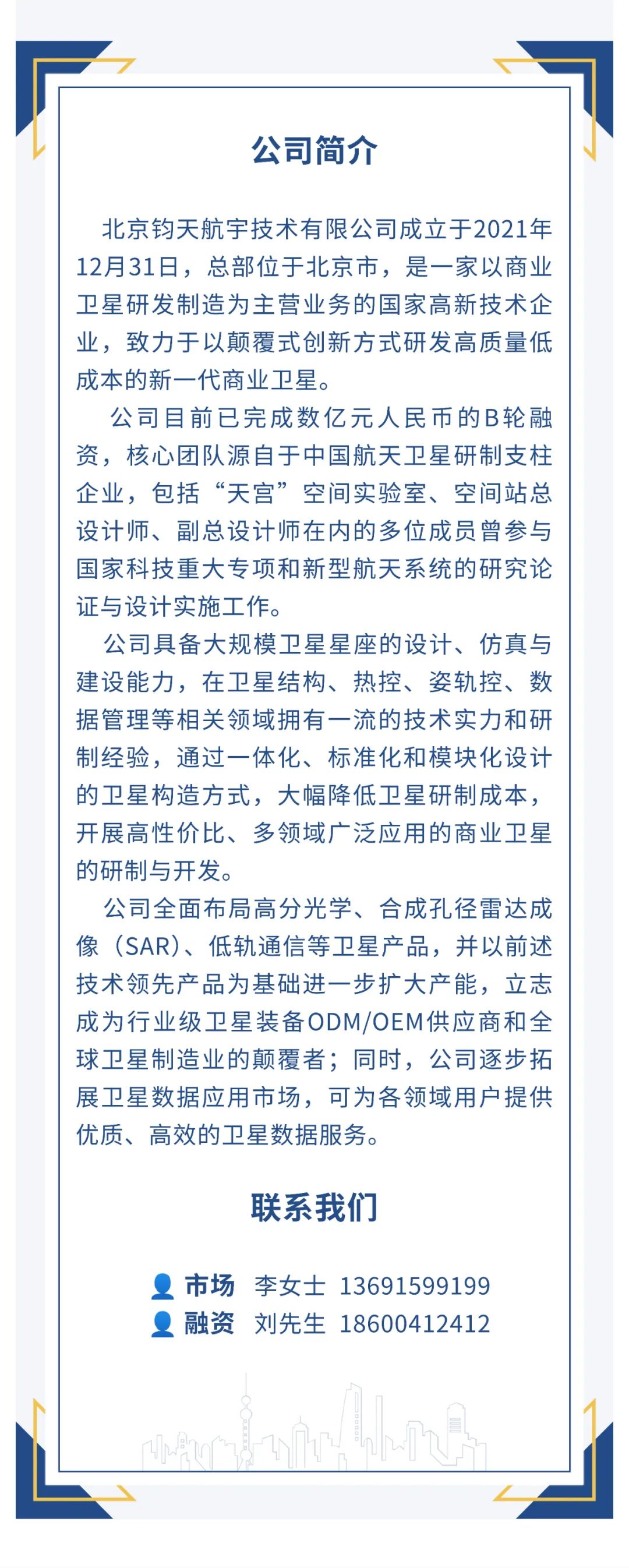 常正勇表示,钧天航宇愿与全球航天伙伴一道,携手推动太空产业的技术创新与跨境合作,通过提供卫星研发制造服务,助力中国商业航天技术更好地服务全球市场。
