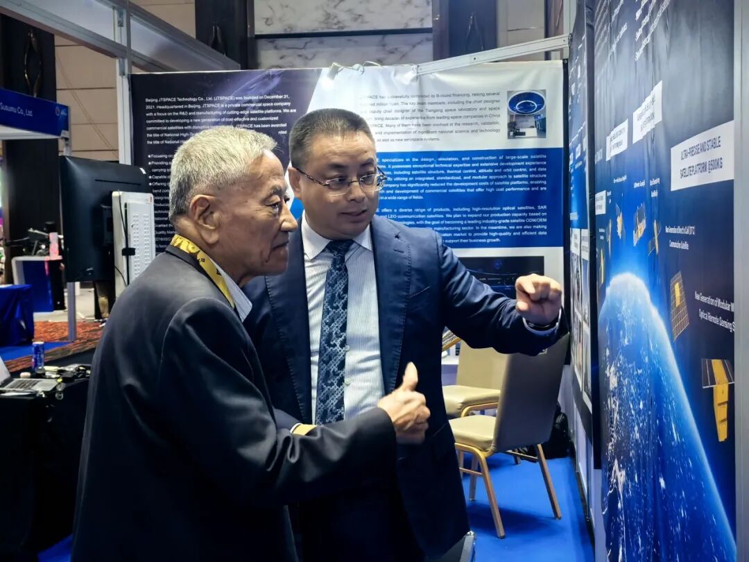 作为公司在海外独立参展的第一站,在此次展会上,钧天航宇董事长常正勇带领团队全面展示了公司的卫星研制能力和产品矩阵,与世界各地的行业伙伴进行深入交流。展览期间,中国科学院院士、中国工程院院士李德仁,GISTDA原执行董事Dr. Suvit Vibulsresth等业内专家莅临钧天航宇展台参观指导。