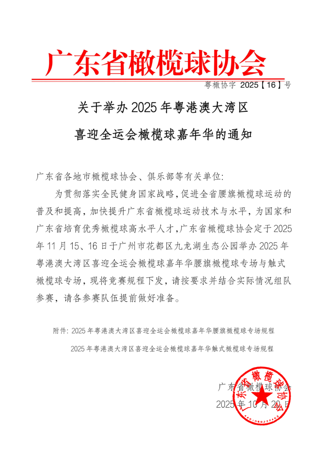 关于举办2025年粤港澳大湾区喜迎全运会橄榄球嘉年华的通知