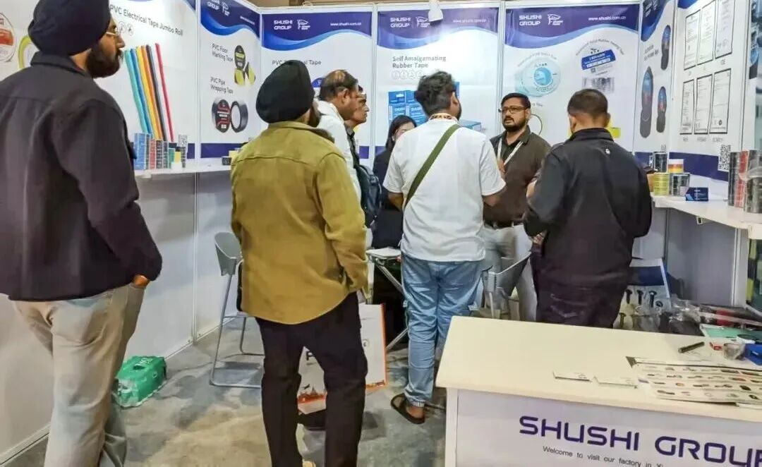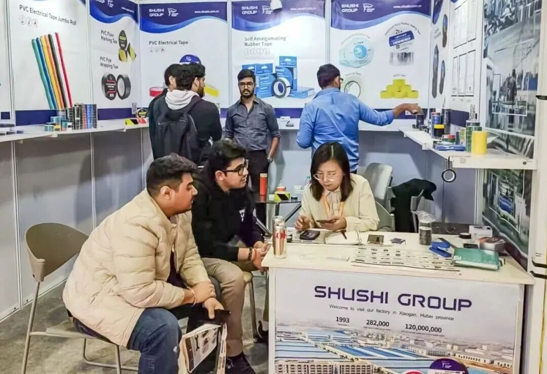 开展首日,舒氏集团展馆前人潮涌动,来自印度及南亚、中东等采购商、工程师与行业专家纷纷驻足交流,围绕产品特性、应用场景,现场工作人员展开深度探讨。此次参展,舒氏集团展示了针对不同工业场景研发的明星胶带产品。