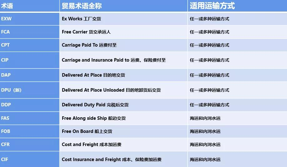 •海运:FOB/CFR/CIF(大宗商品首选)- 空运:FCA/CIP(电子产品推荐)- 中欧班列:CPT/DAP(机械类货物适用)- 跨境电商:DDP(亚马逊FBA仓常用) 按客户类型选择