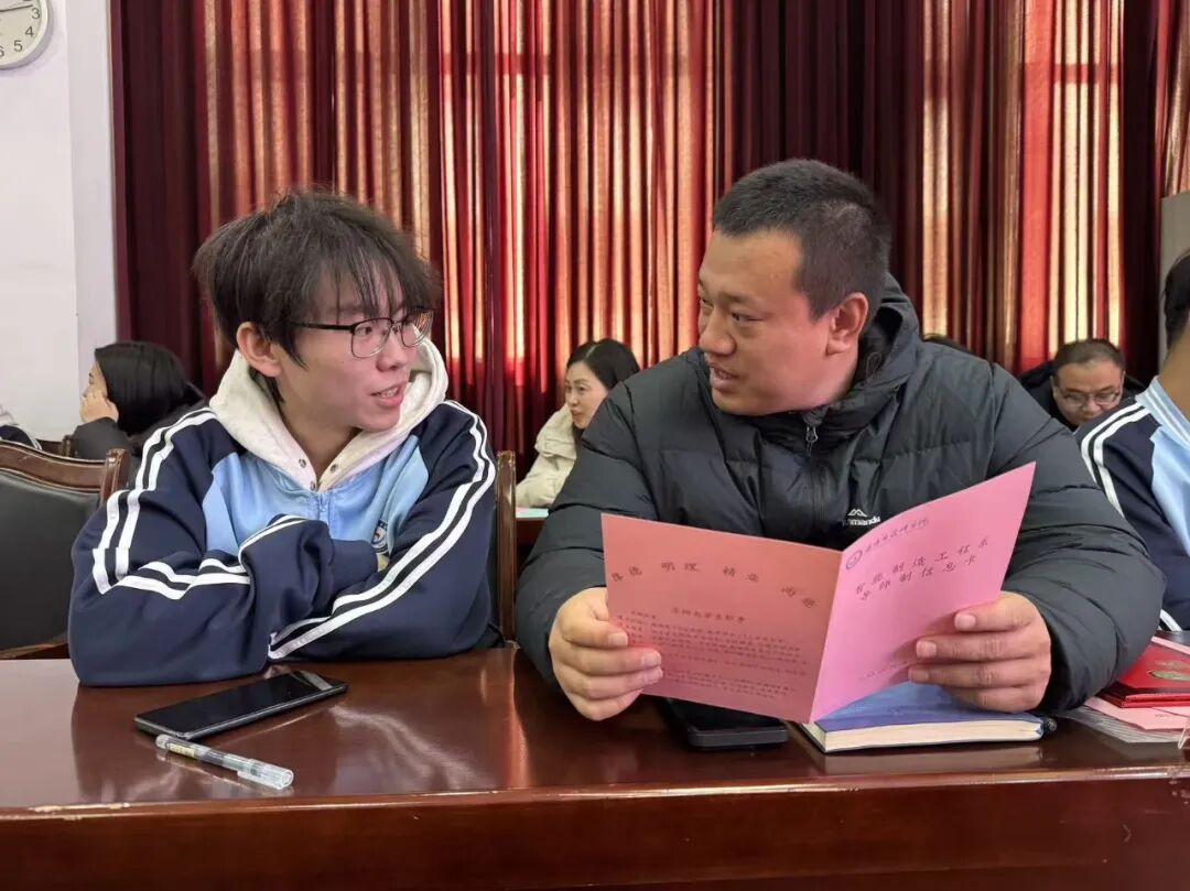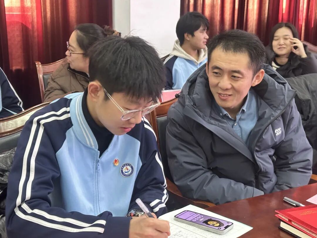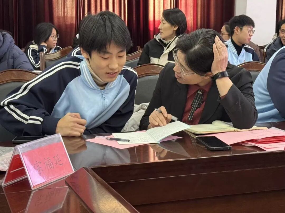 各位导师与对应受导学生就近交流,同学们主动汇报自身情况,现场形成了温馨的育人互动氛围。