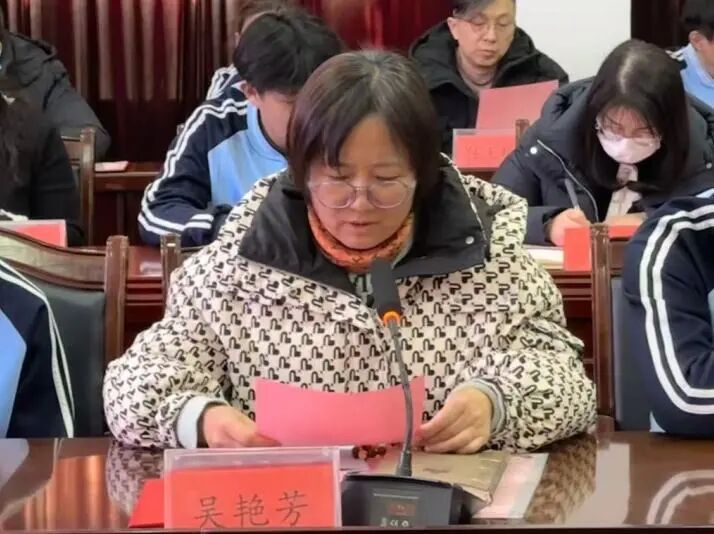导师代表魏春燕老师登台发言,分享自身育人初心与具体帮扶计划,言语间满是对学生的关爱与责任担当。