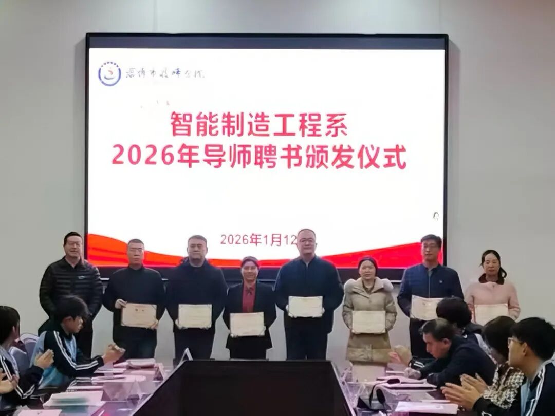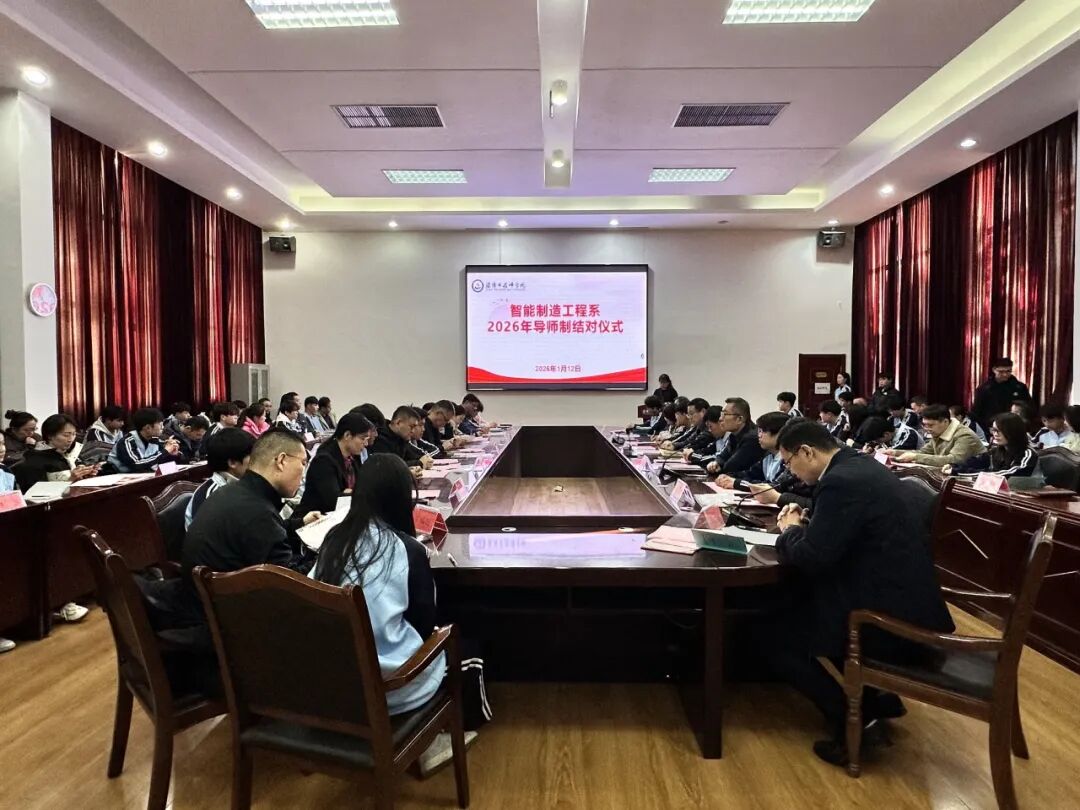 为落实立德树人根本任务,充分发挥导师在学业指导、职业规划与人格塑造方面的引领作用,1月12日上午10时,智能制造工程系2026年度导师制结对仪式在学院报告厅会议室隆重举行。全体导师与受导学生共90人齐聚一堂,携手开启“传帮带”的育人新篇章。仪式由智能制造工程系学生科科长王慎水主持。