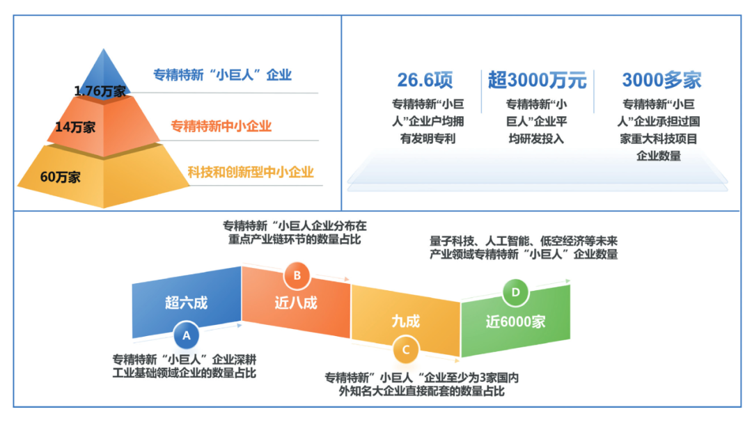 2025年我国优质中小企业梯度培育工作稳步推进,截至11月已累计培育专精特新“小巨人”企业超1.76万家,专精特新中小企业超14万家,科技和创新型中小企业超60万家。有3000多家专精特新“小巨人”企业承担过国家重大科技项目。超六成专精特新“小巨人”企业深耕工业基础领域,近八成企业分布在重点产业链环节,九成企业至少为3家国内外知名大企业直接配套,为强链稳链发挥了重要支撑作用。