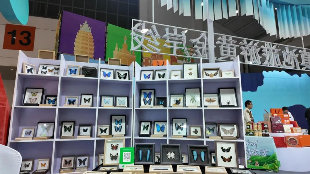 在展区现场,丰富多样的互动体验与成果展示让人目不暇接。一进展馆,左手边一大面墙的蝴蝶、昆虫标本让人眼前一亮。右手边昆明文旅集团集中展示了滇池旅游黄金岸线的打造成果,让参观者直观感受滇池黄金旅游岸线的蝶变升级。