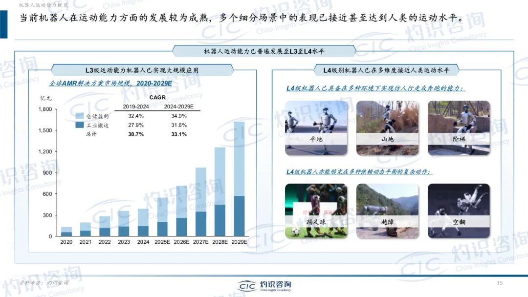 • 运动能力‌:多数产品已达L4级(接近人类水平),支持复杂地形导航;