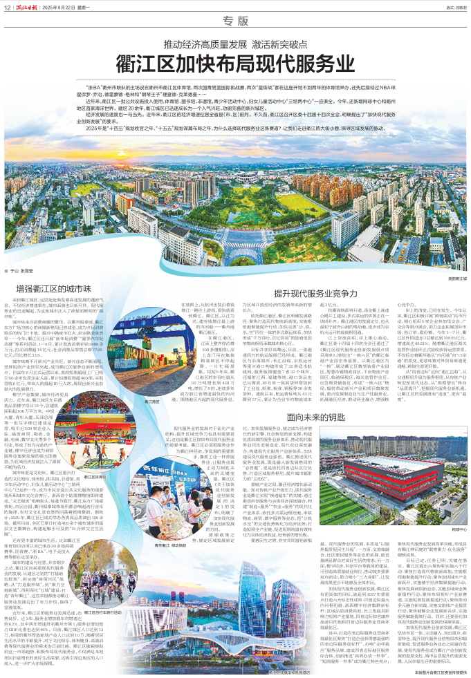9月22日,《浙江日报》专版刊登《衢江区加快布局现代服务业》一文,报道衢江区为了推动经济高质量发展,不断激活新突破点,加快现代服务业创新发展。