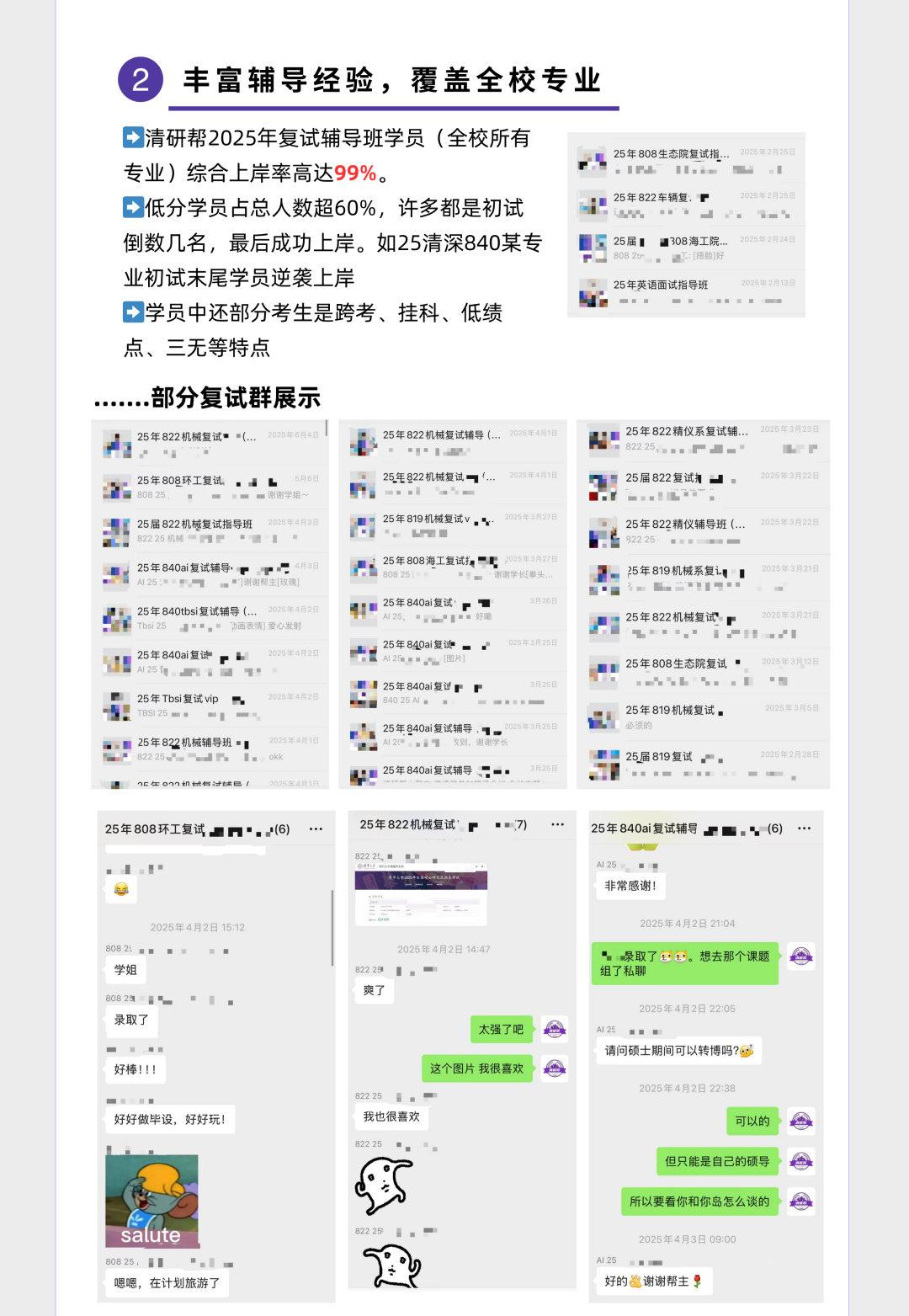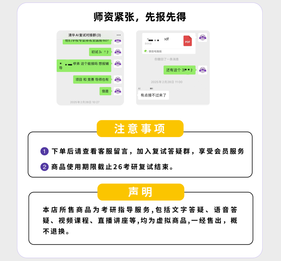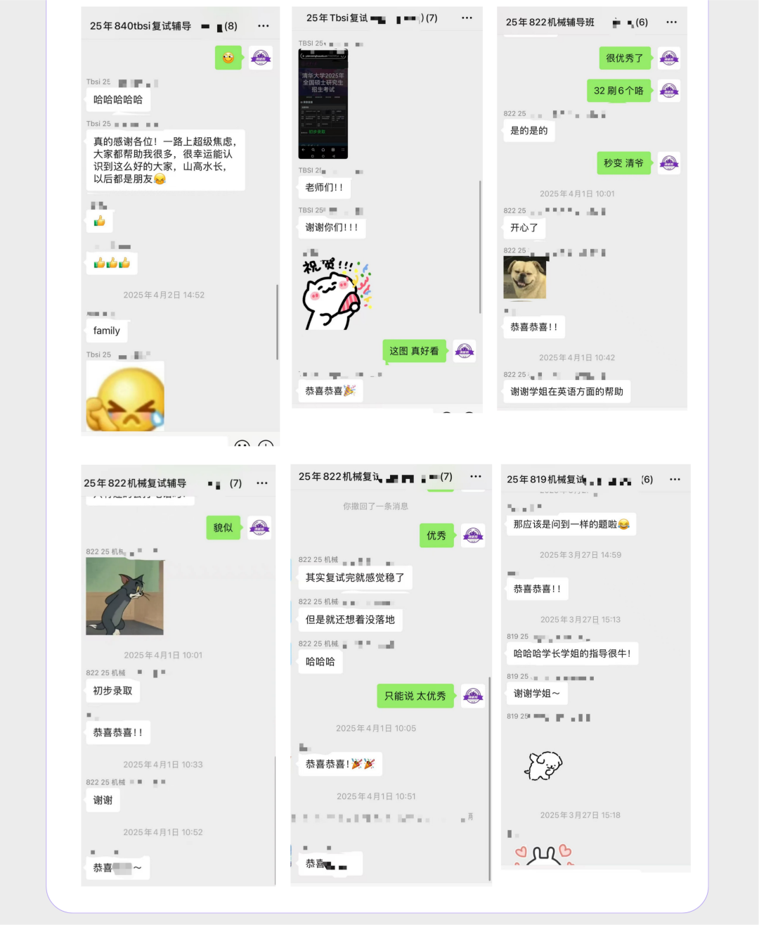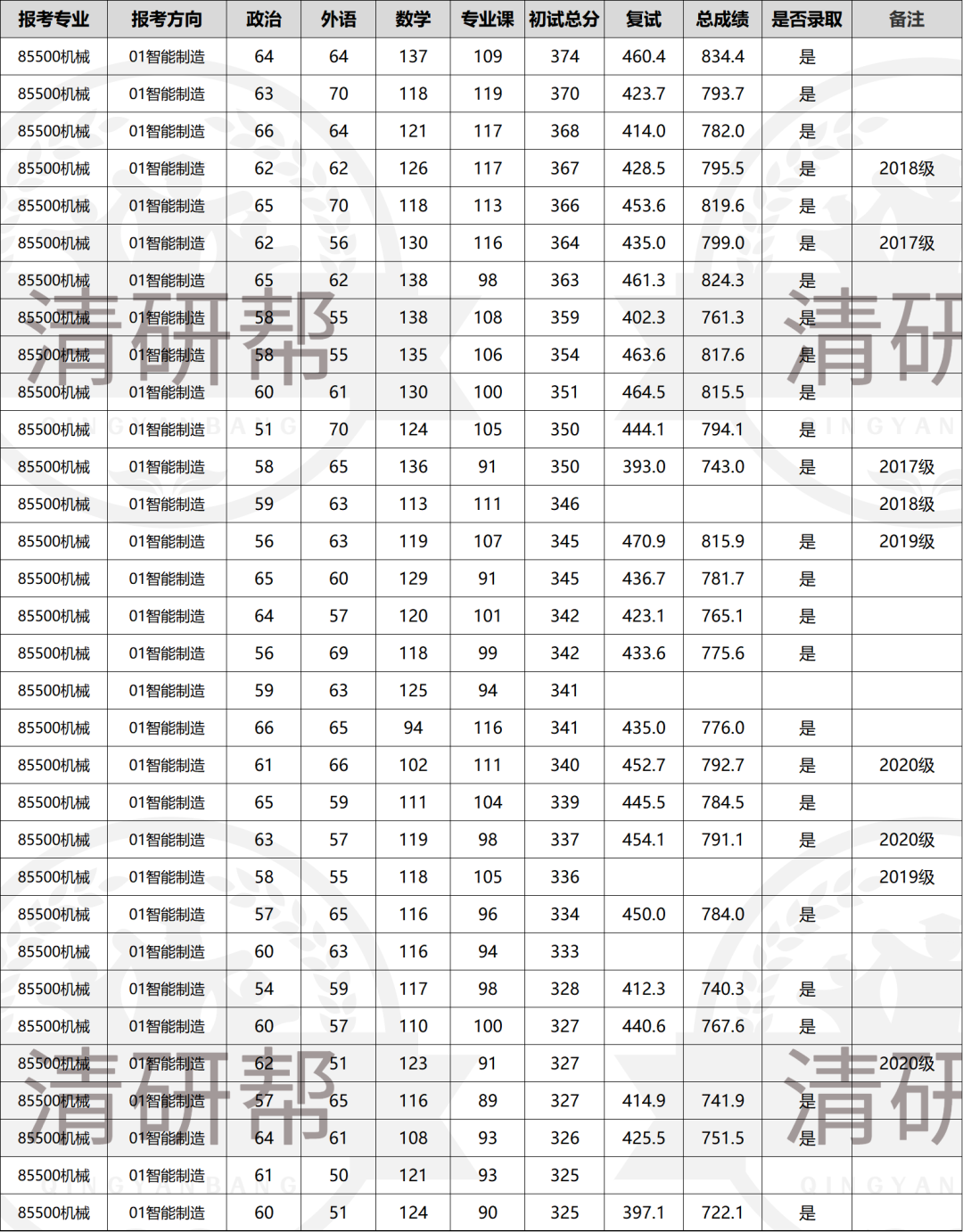 清深2025机械(智能制造)招生简章名额20个,实际录取26个,得益于去年全校取消校内调剂政策,每个院系未招满的专业名额只能在本院系调拨,清深的电气工程、土木水利、资源与环境(海洋)、城乡规划、电子信息(生物医学工程)、大数据工程、材料与化工(02制药工程)、材料与化工(03循证健康工程)、BIO3、生工转化等专业,历年来都是招不满的。当然在2025年部分专业改考数学二后,使得进面人数增加,典型案例就是资源与环境(01环境工程)。多出来的名额就给了进面人数多的专业,由学院和各专业互相博弈确定最终名额。 去年进入复试的32名考生,有21名购买过我们的复试服务,含指导班/VIP班/无忧班(SVIP),其中辅导班成员全部上岸。 进面考生清一色211/985学生,无双非。其中211考生5人,均全部上岸。985高校中也有中国海洋大学的考生上岸。被刷的考生有:北航、东南大学、大连理工、南开大学、天津大学、华南理工等5名考生。