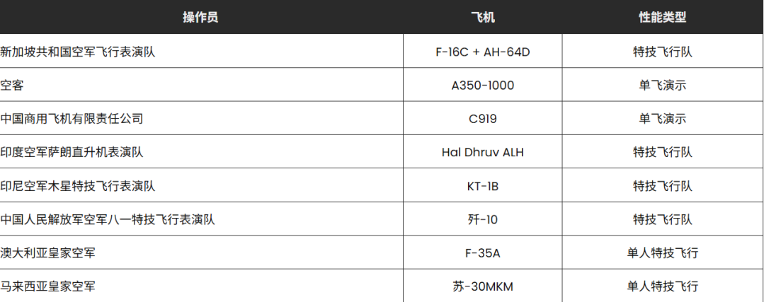 全球顶级飞行力量,汇聚新加坡空军、中国人民解放军空军、中国商飞、空客等,8支来自中、美、欧洲和俄罗斯等多国的飞行表演队,献上超级震撼的视觉盛宴。