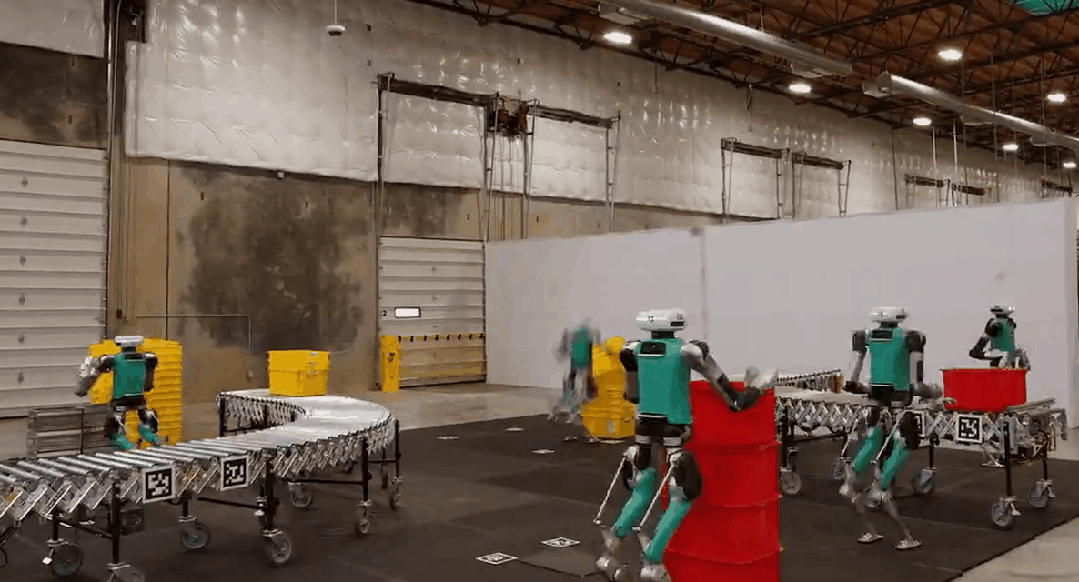 13)Agility Robotics:美国,以“集群协作与工业落地”为核心,展示了多台Digit双足人形机器人在仓储场景中的协同作业能力,其机器人通过数字孪生技术实现动态任务分配与路径优化,完成卸垛、堆叠等复杂流程,验证了规模化部署的可行性。Digit机器人搭载新一代高精度传感器与强化学习算法,负载能力提升至23公斤,续航延长至6小时以上,并支持与AMR无缝协作,形成“人形+轮式”混合自动化体系。展会现场,Digit在模拟仓库环境中演示了与英伟达Omniverse平台的深度集成,通过云端技能库快速适配新任务,同时与舍弗勒集团签署批量采购协议,计划2026年底前部署至全球100家工厂,以提升仓储作业效率。