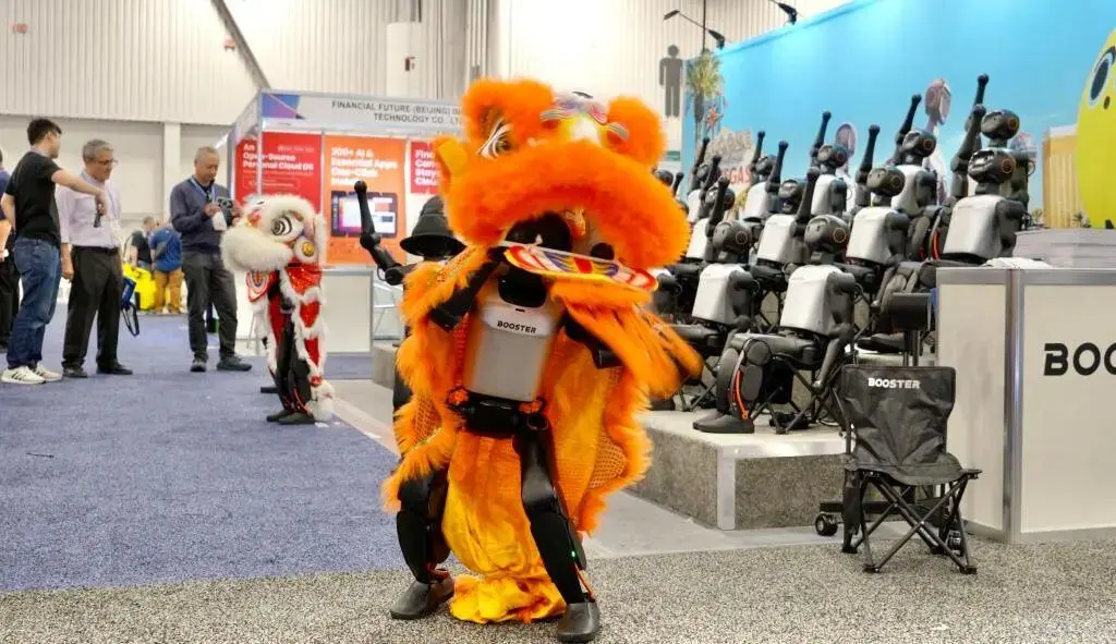 10)加速进化:“机器人矩阵”为核心亮点,携数十台Booster K1人形机器人集中展示了群控能力与通信低延迟特性——机器人通过集体扭头、挥手、齐舞及非遗舞狮表演,直观呈现了多机协同的高精准运动控制。作为全球出货量领先的具身智能企业,加速进化Booster K1凭借高性价比与开放开发接口,海外市场占比已超40%,广泛应用于高校科研、开发者社区及商业展演场景,开展首日即实现数十台销量,成为本届CES上中国机器人出海的标杆案例。其技术积淀(如RoboCup冠军机型的运动控制能力)与量产交付能力(全球累计出货量近1000台),进一步验证了具身智能从实验室到规模化商用的可行性。