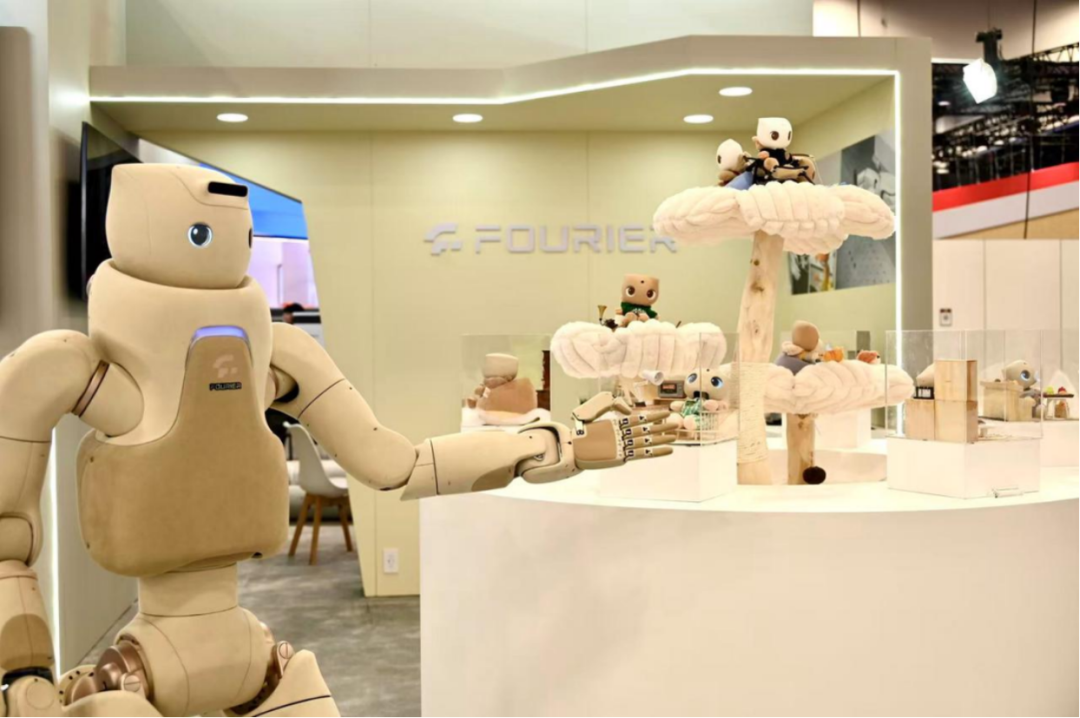 6)傅利叶:“有温度的具身智能”为核心,聚焦情感交互与真实场景落地,携全尺寸人形机器人GR-3及桌面级“Care-bot”概念原型重磅亮相:GR-3凭借55个全身自由度与集成视觉、声源定位及触感反馈的全感交互系统,通过注意力管理机制实现多模态感知到动作规划的快速闭环响应,在“井字棋”人机对弈、舞蹈表演等场景中展现了拟人化情感反馈能力,其莫兰迪暖调配色与超跑级内饰设计消解了传统机器人的机械感,同时支持社交陪伴(独居老人关怀、儿童互动)与辅助陪护(康复训练、健康监测)双场景应用;同步推出的桌面级“Care-bot”概念原型以玩偶形态探索随身化情感陪伴可能,支持外观与人格定制。傅利叶通过软硬一体技术体系构建全栈式交互智能平台,系统性推进具身智能在医疗康养、教育服务等真实场景的深度落地,首次在海外规模化展示人形机器人从功能工具向情感伙伴的范式转型,印证了其“主动交互驱动商业化闭环”的技术路径。
