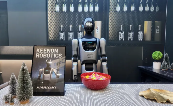 16)优理奇:“全栈自研+场景落地”为核心,携Wanda3.0、Panther等产品亮相,集中展现从技术突破到商业场景的完整能力。其Wanda3.0作为核心产品,搭载8自由度机械臂与自研UniTouch多模态感知模型,实现泡茶、调酒、清洁等精细操作,精准对接酒店、餐饮等全球服务机器人市场核心需求;Panther则协同演示多场景任务,验证“人形+机械臂+工具调用”的组合能力。