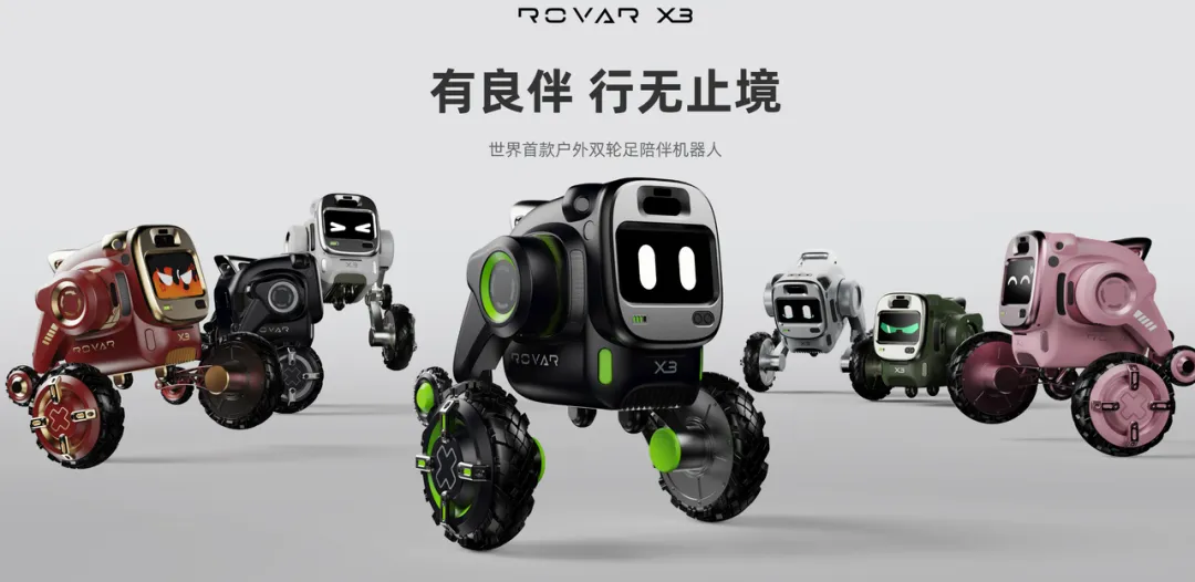 2)越疆机器人:“家庭智能体”为核心,携专为家庭设计的四足智能机器狗Rover X1亮相,该产品以7499元的亲民定价打破高性能机器人的高价壁垒,搭载双视觉跟踪系统实现全向感知与自主决策,全地形轮腿结构适配地板、草地、小坡坎等家庭日常环境,智能负重能力可完成书包护送、物资携带等任务;其自研开放平台支持多角色灵活切换,覆盖户外探险、家庭安防、编程教育及情感陪伴等多元场景。