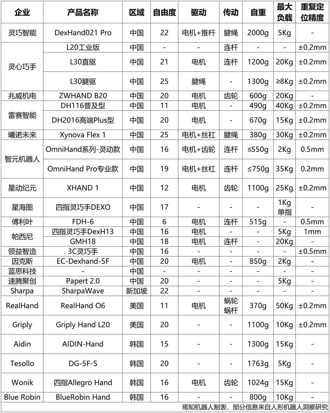 1、灵巧手:
