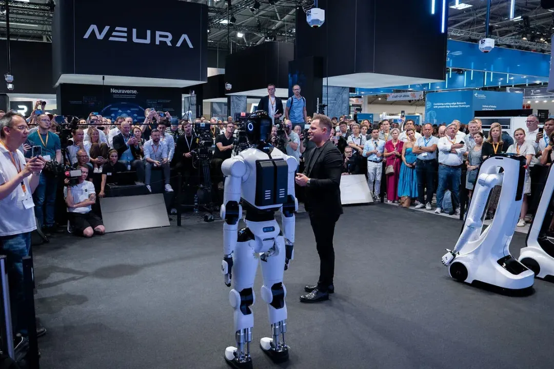 11)Neura Robotics:德国,以“认知协作”为核心,携第三代4NE-1人形机器人亮相,集中展现其在认知AI、人机协作及场景化落地的技术突破。作为Neura Robotics的旗舰产品,4NE-1身高1.8米、重80公斤,搭载自主研发的AURA AI系统,融合多模态感知(视觉、听觉、触觉)与自主决策能力,可完成工业装配、家庭服务等多场景任务——其表面覆盖“人工皮肤”实现安全避障,配合16自由度灵巧手完成精细操作,同时通过Neuraverse平台实现机器人间技能共享与持续学习。此次参展,4NE-1不仅展示了与保时捷设计合作的外观设计,更通过工业装配、家庭家务等实机演示,验证了其在复杂环境中的适应性与实用性,标志着Neura Robotics的认知机器人从实验室走向真实部署阶段,目标覆盖工业制造、家庭服务等核心场景。