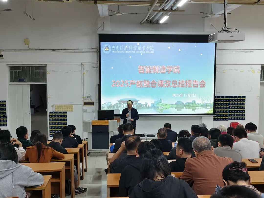 为系统总结产教融合课程改革阶段性成果、精准梳理问题、科学部署后续工作,12月8日,智能制造学院在实训5-100召开2025年产教融合课改总结报告会。会议由院长助理李文辉主持,学院领导班子、各教研室主任及全体教师参会,凝聚深化产教融合、提升教学质量的共识。