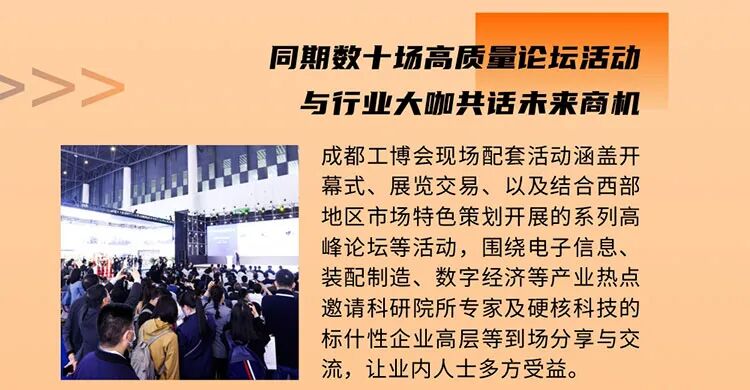 2025年4月23-25日,成都国际工业博览会(简称“成都工博会”)将会在中国(成都)西部国际博览城盛大举行。展会预计面积超60000平方米,汇聚了650+优质参展品牌,一场集产品展示、系列论坛、采供配对、交流合作等为主的大型现代工业技术博览会,期待您的到来!