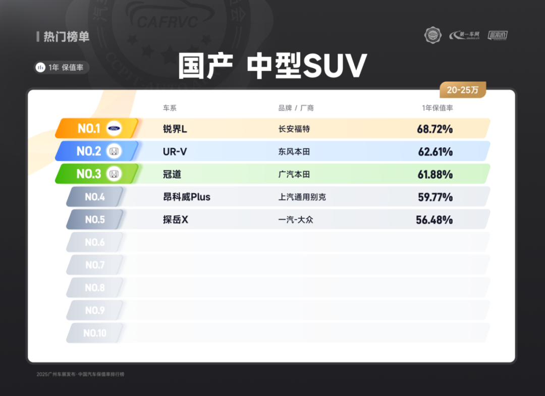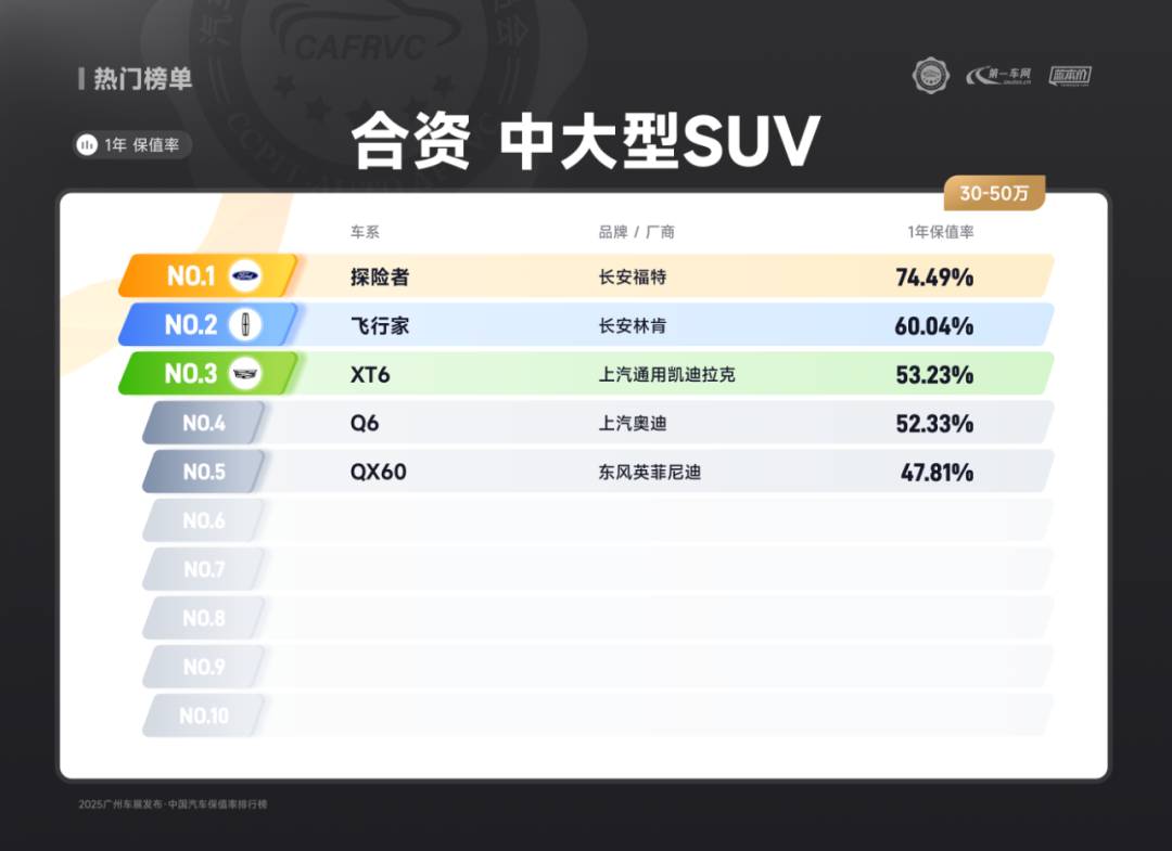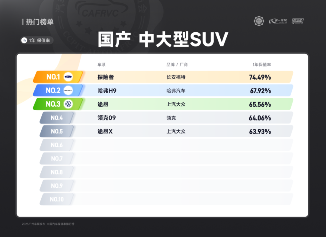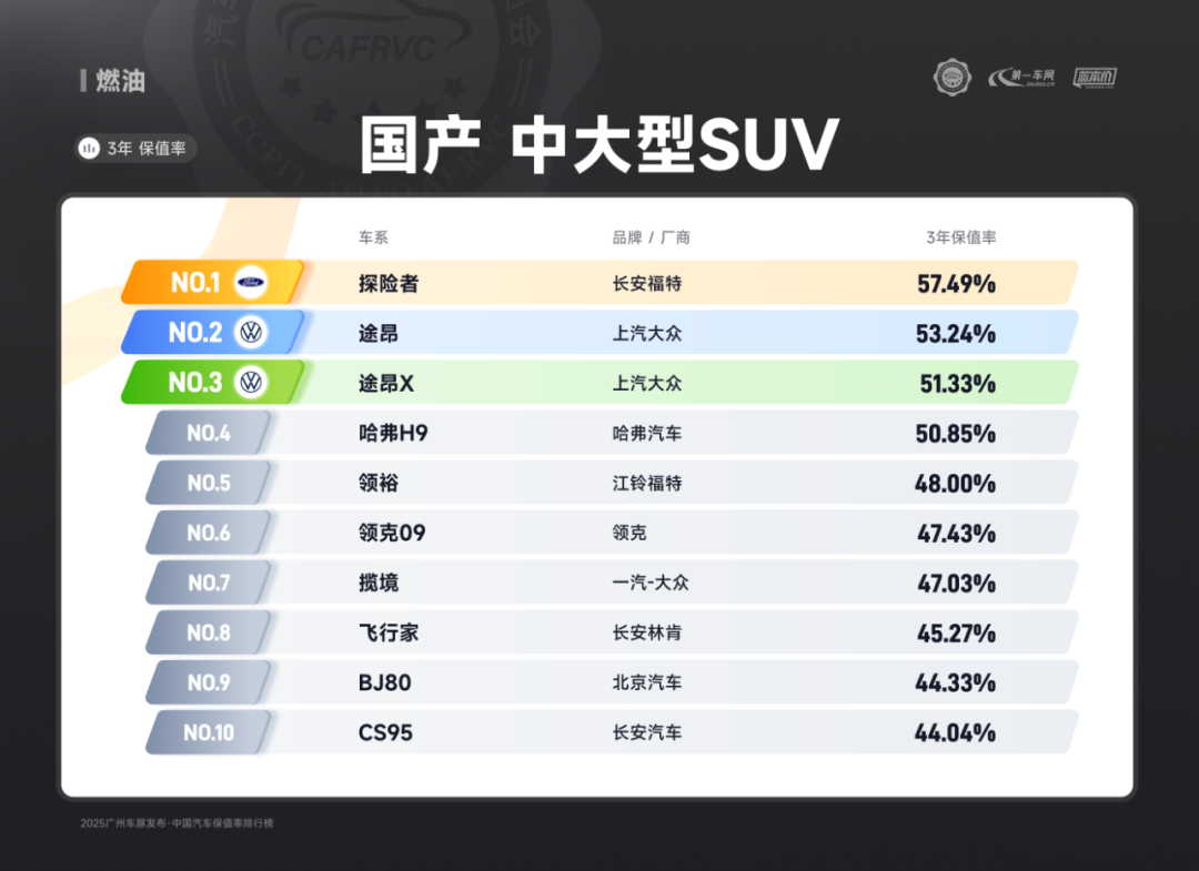 (长安福特探险者 国产燃油中大型SUV保值率排名第一)
