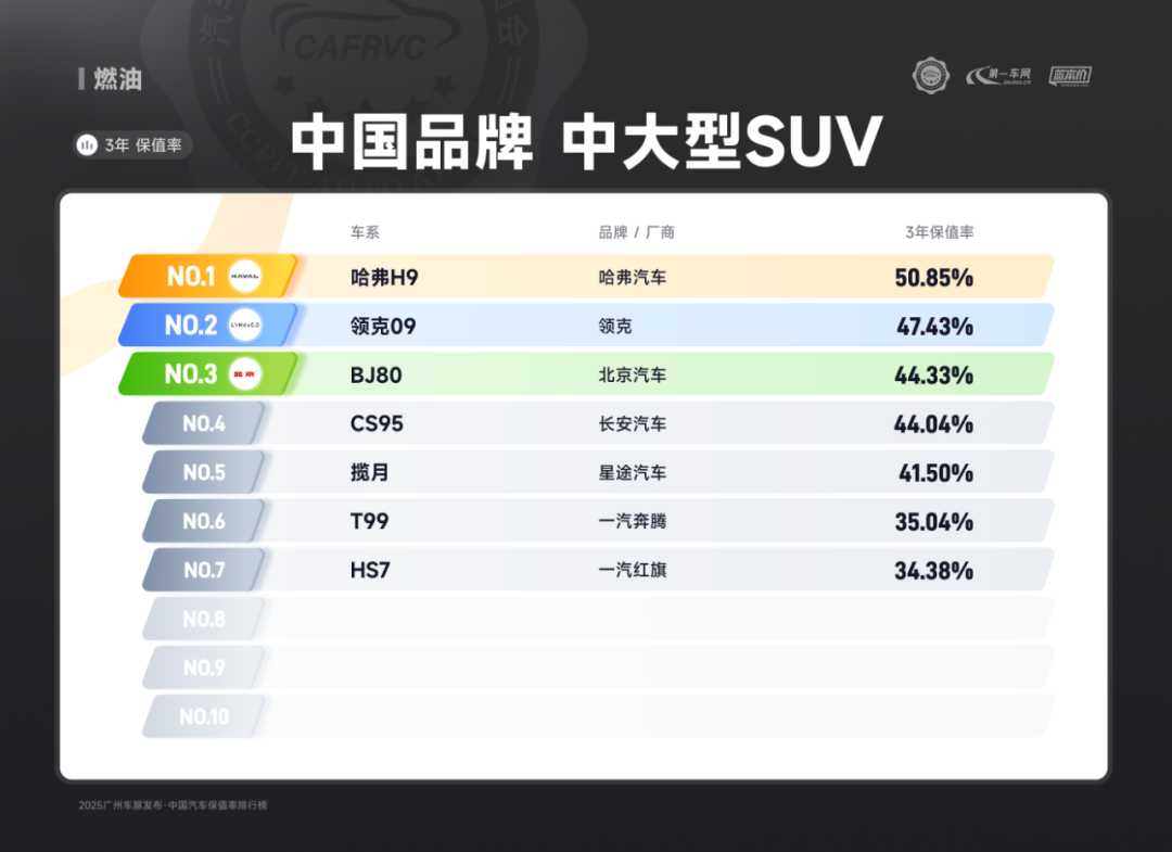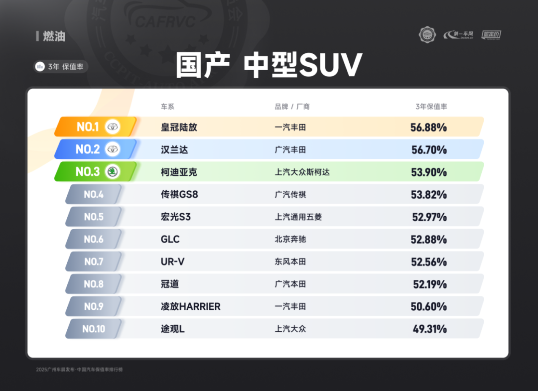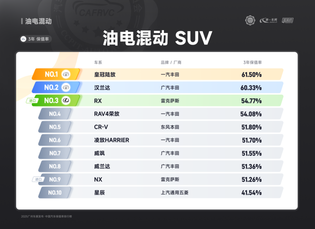 (一汽丰田皇冠陆放 油电混动SUV保值率排名第一)
