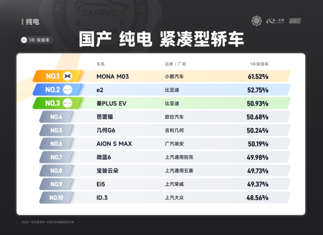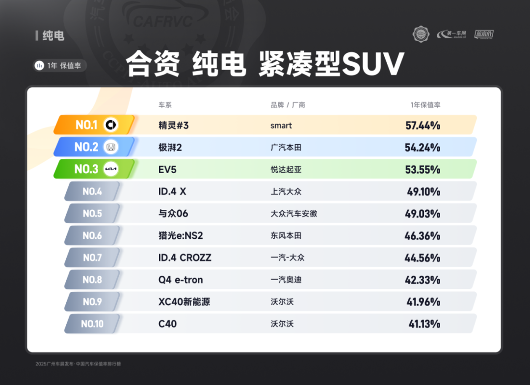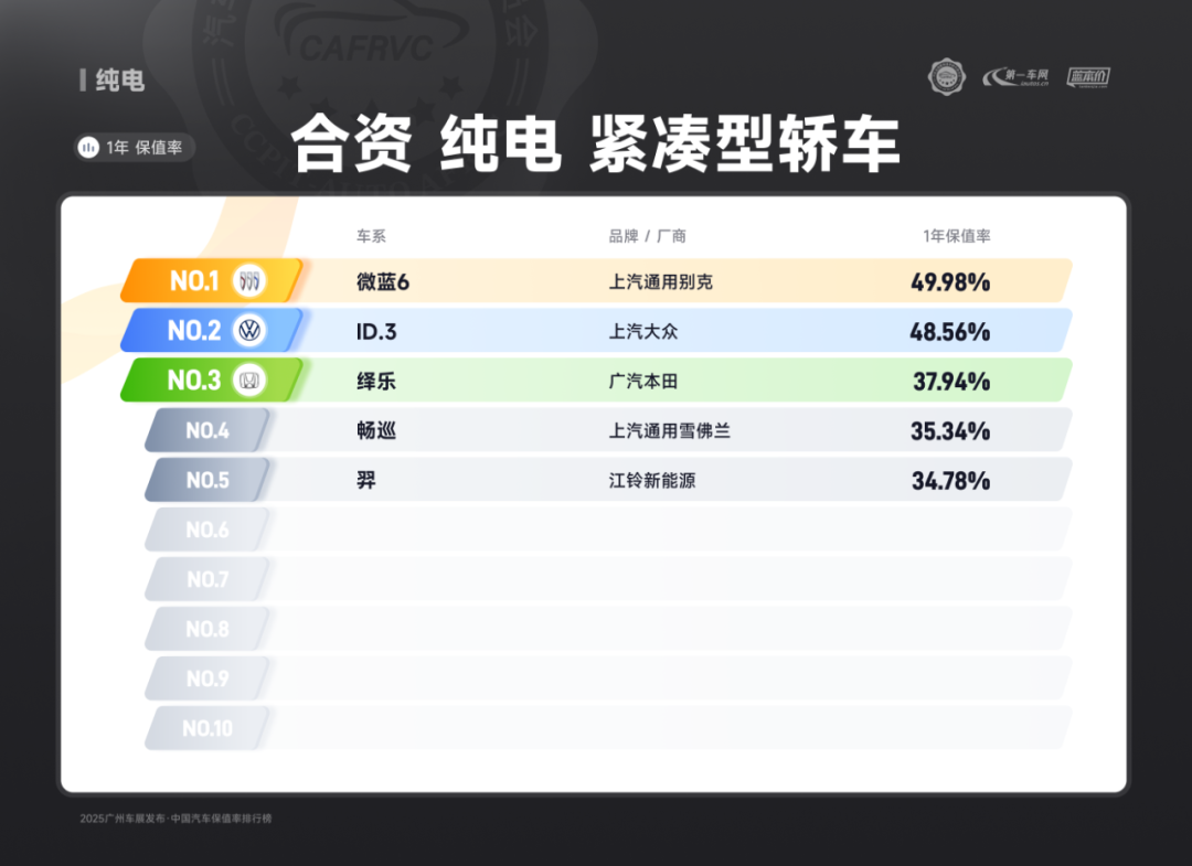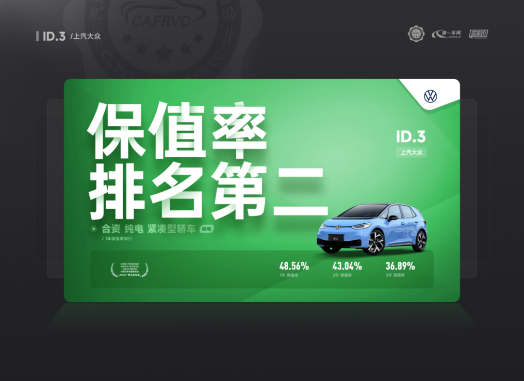 (上汽大众ID.3 合资纯电 紧凑型轿车保值率排名第二)
