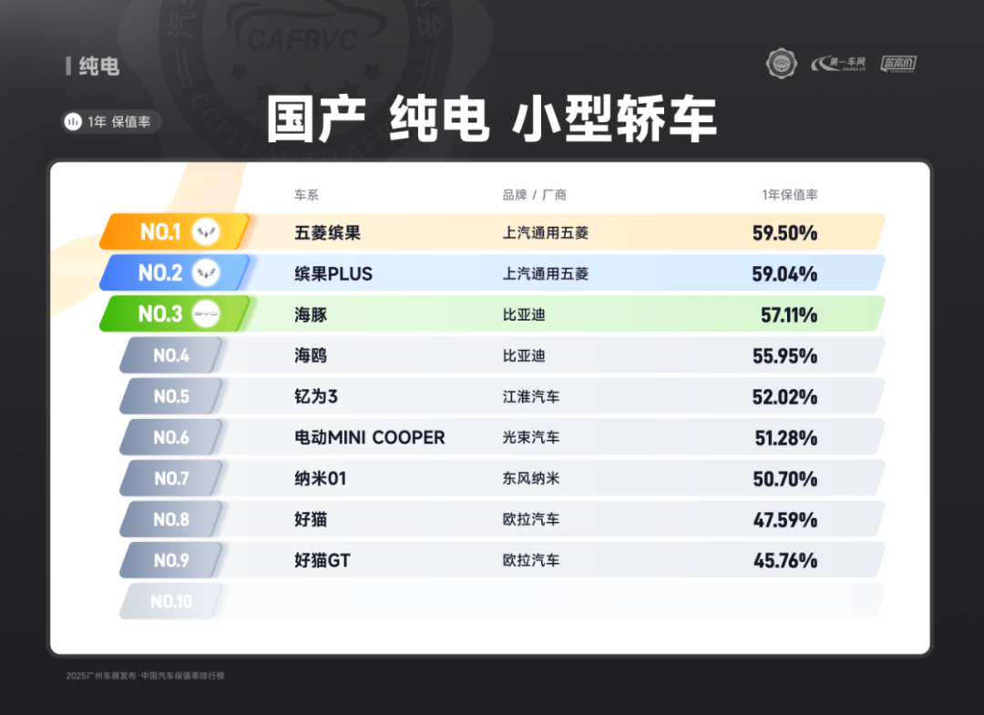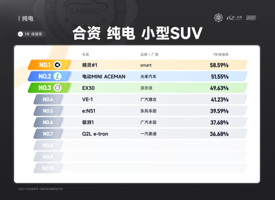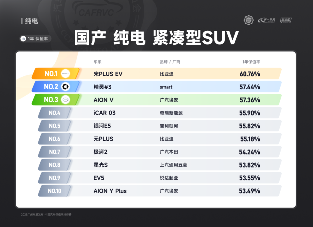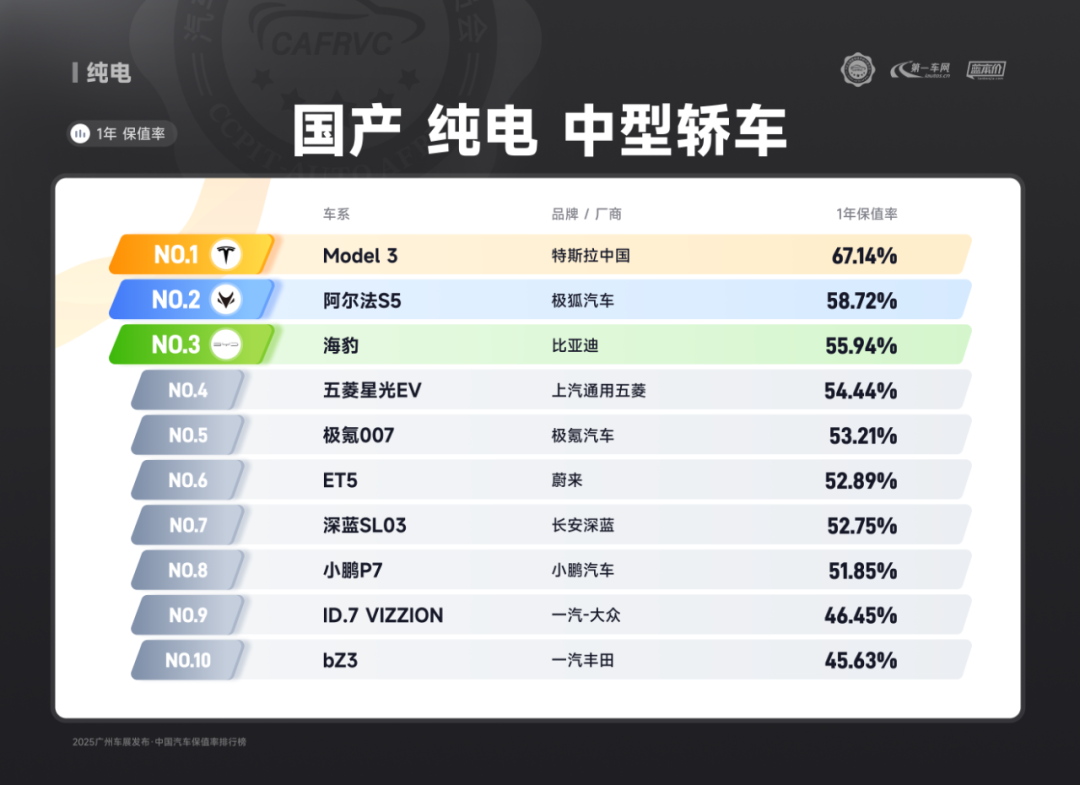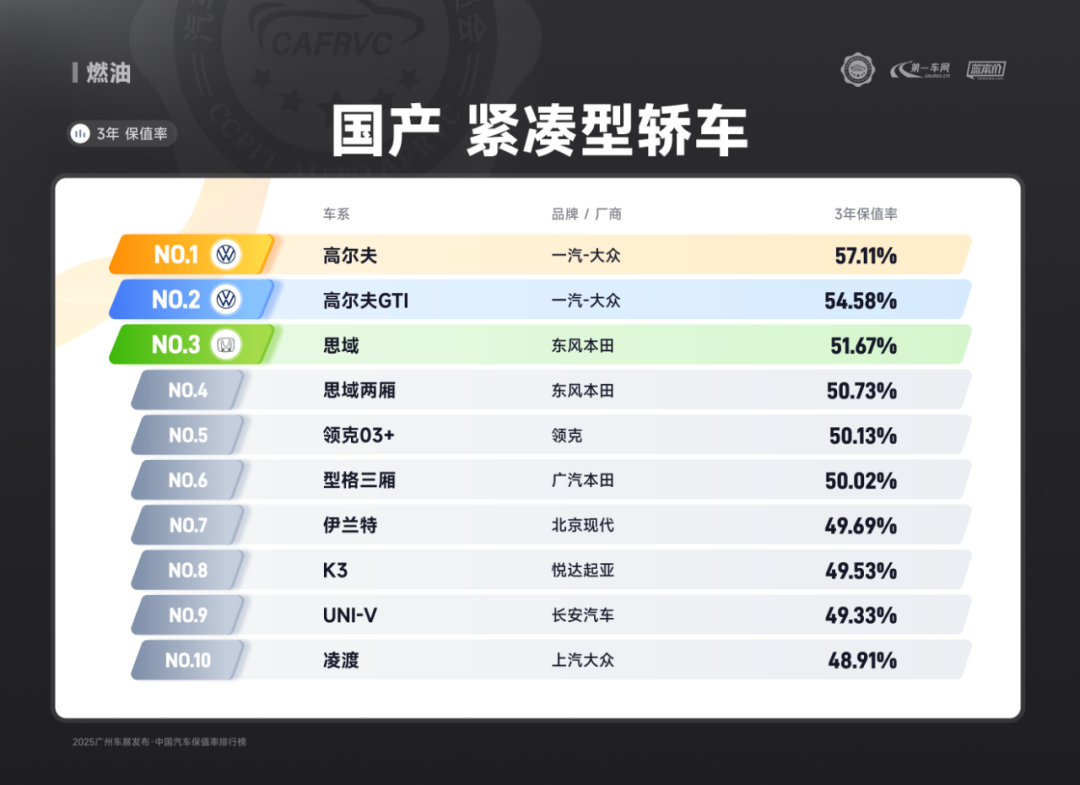 (上汽大众ID.3 合资纯电 紧凑型轿车保值率排名第二)