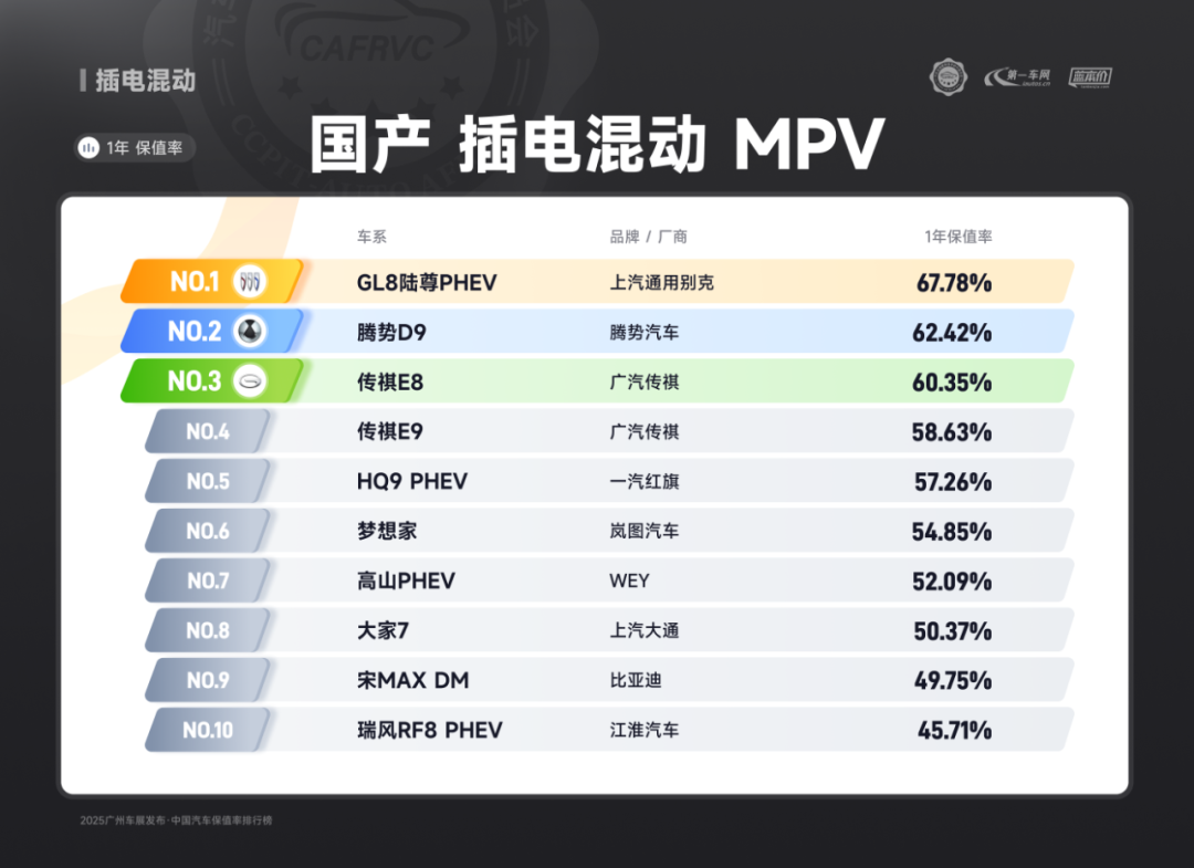 (上汽通用别克GL8陆尊PHEV 国产插电混动MPV保值率排名第一)