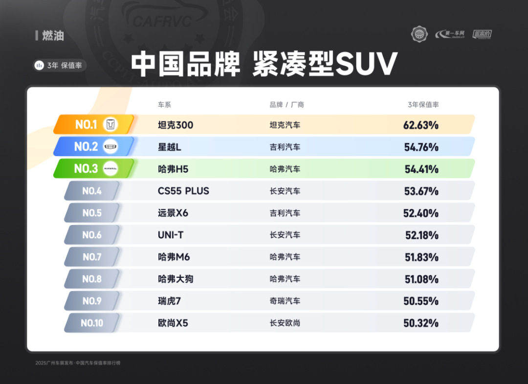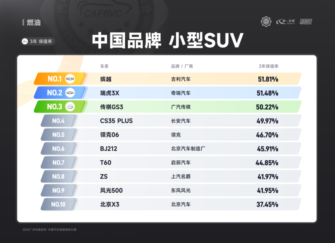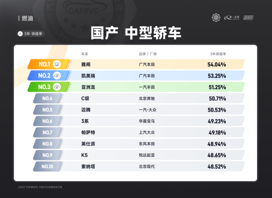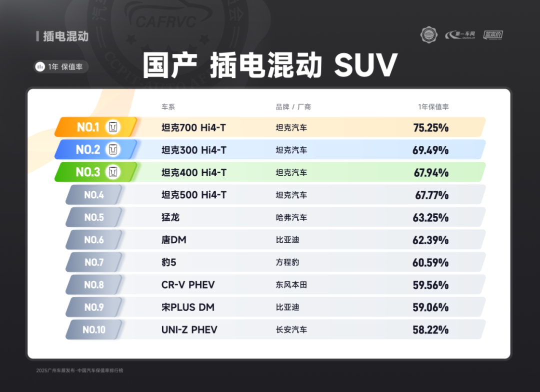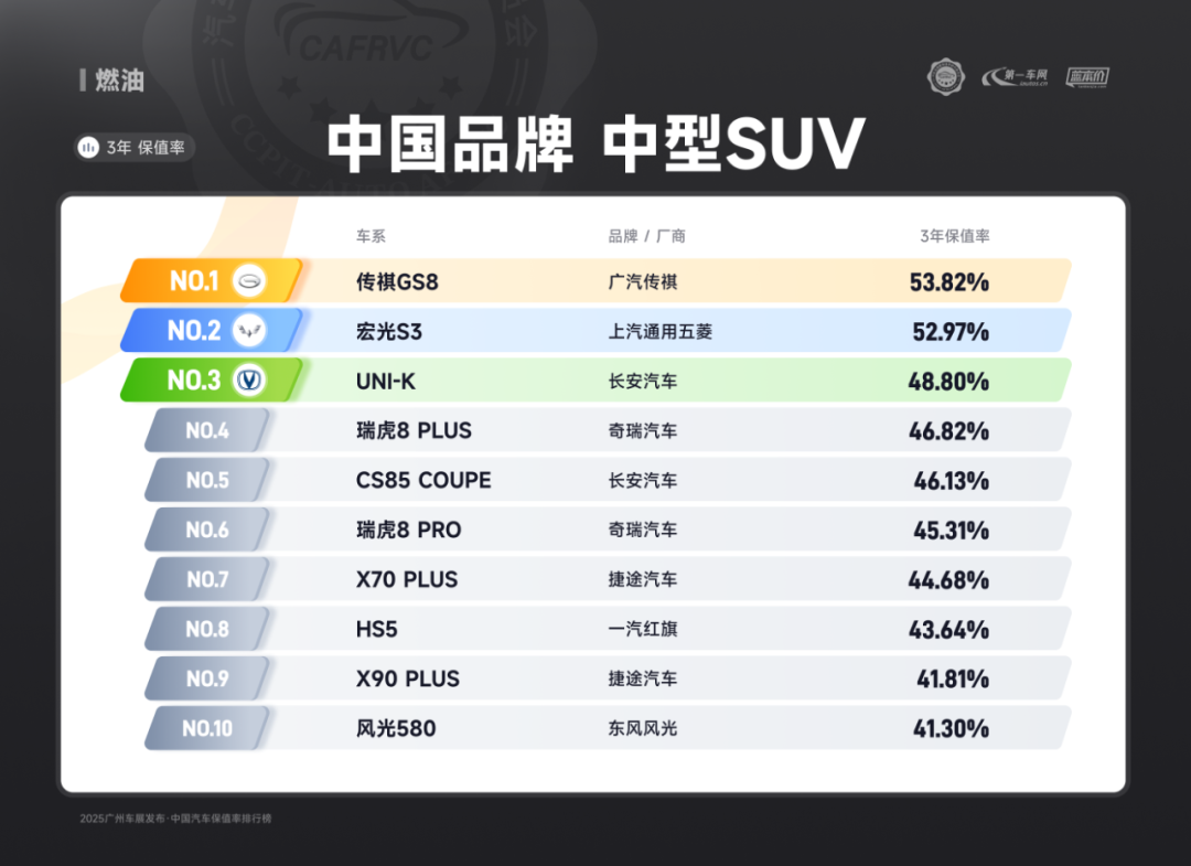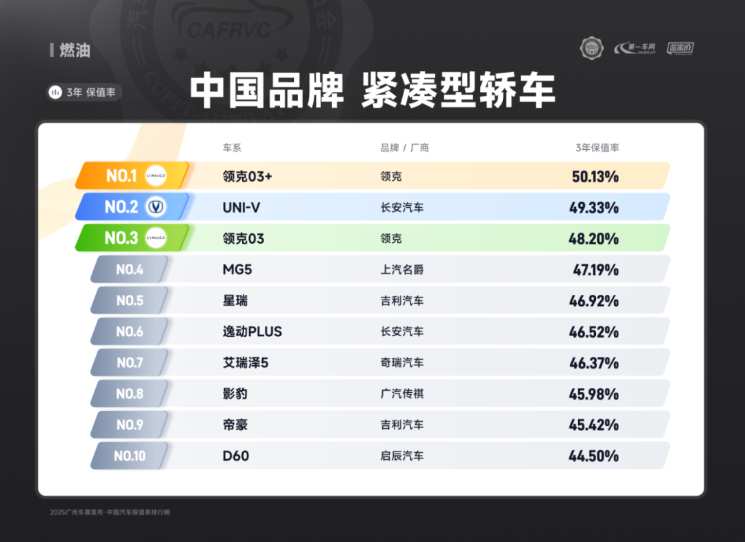 进口车型中,保时捷Panamera、雷克萨斯ES、捷尼赛思G80的保值率同样亮眼:保时捷Panamera搭载2.9T V6/4.0T V8发动机,零百加速最快仅3.8秒,空气悬架与四区空调兼顾性能与舒适;雷克萨斯ES延续品牌可靠性基因,混动系统运转静谧平顺,卓越的售后服务体系构建强大用户粘性;捷尼赛思G80提供前置后驱/四驱可选,2.5T动力匹配8挡手自一体变速箱,31.8万起的定价在豪华品牌中形成差异化竞争,4门5座布局满足高端通勤需求。除上述提到的多个高保值率车系以外,本次保值率排行还包含以下详细榜单: