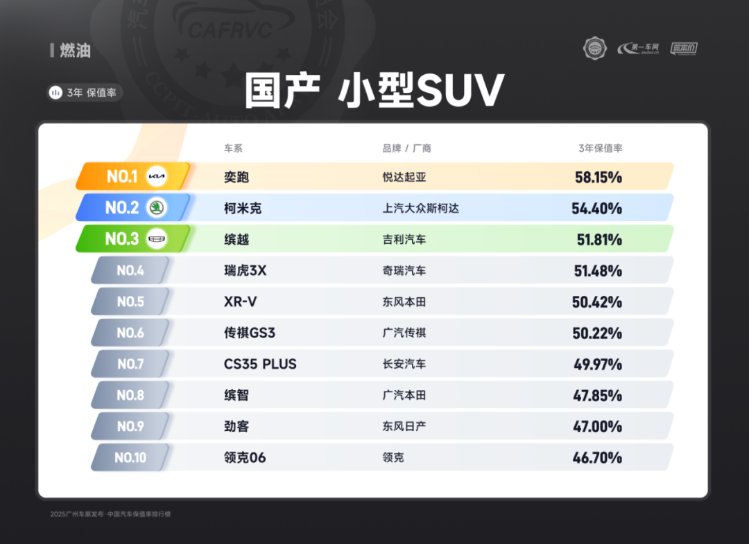合资车型方面,上汽大众途昂在SUV细分榜单中排名第一,作为中大型SUV市场的热门车型,其提供5门5座与7座灵活布局,适配前置前驱与4Motion智能四驱两种驱动形式,满足多场景用车需求。动力上搭载成熟的380TSI涡轮增压发动机,匹配7挡双离合变速箱,兼顾动力输出与行驶平顺性。内饰配备实用的中控互联系统与全景天窗,全系标配多气囊防护与主动刹车系统,25.99万的起售价格进一步强化了其市场竞争力;一汽丰田皇冠陆放在油电混动SUV中排名第一,依托丰田成熟的THS混动技术实现超低油耗,延续皇冠品牌的高端定位,大七座布局与细腻的底盘调校兼顾家用与商务场景;长安福特探险者在中大型SUV中排名第一,全系搭载2.3T EcoBoost发动机与10挡手自一体变速箱,提供5/6/7座灵活布局,前置后驱平台带来更优操控,30.98万起的定价凸显性价比;高尔夫拿下紧凑型轿车保值率榜首,作为大众经典车型,2025款车型延续精准操控基因,7挡双离合变速箱配合经济排量,成为两厢车市场标杆;GL8在MPV榜单中遥遥领先,2025款陆上公务舱与陆尊系列覆盖22.99-36.98万区间,15.6英寸后舱智慧屏与智能香氛系统提升豪华感,i-VISTA五星认证的NOP领航功能增强出行安全性。雅阁、CR-V、奥迪A6L等经典车型也保持了优异的保值水平:雅阁作为中型车市场常青树,凭借本田地球梦发动机的可靠性能与宽敞后排空间,长期占据商务家用双重市场;CR-V以灵活的空间利用率和燃油经济性著称,混动版本更兼顾动力与油耗平衡;奥迪A6L则依托quattro四驱系统的操控优势与虚拟座舱的科技体验,持续领跑豪华中大型车市场。