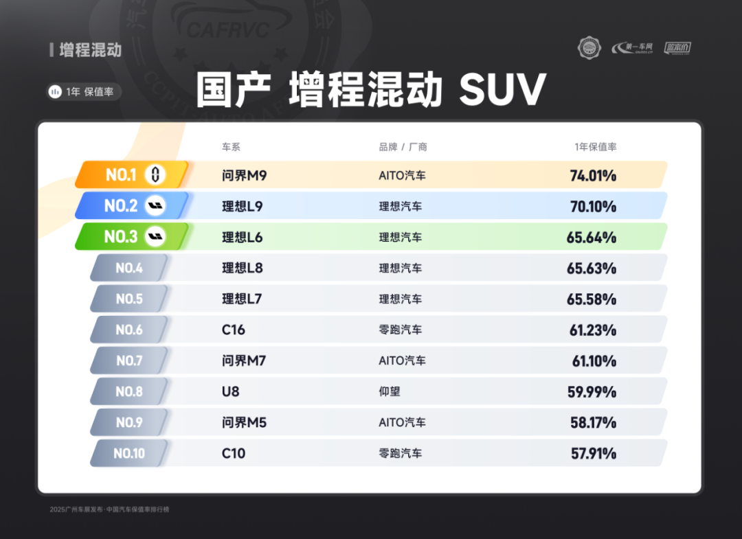 (AITO汽车问界M9 国产增程式混动SUV保值率排名第一)