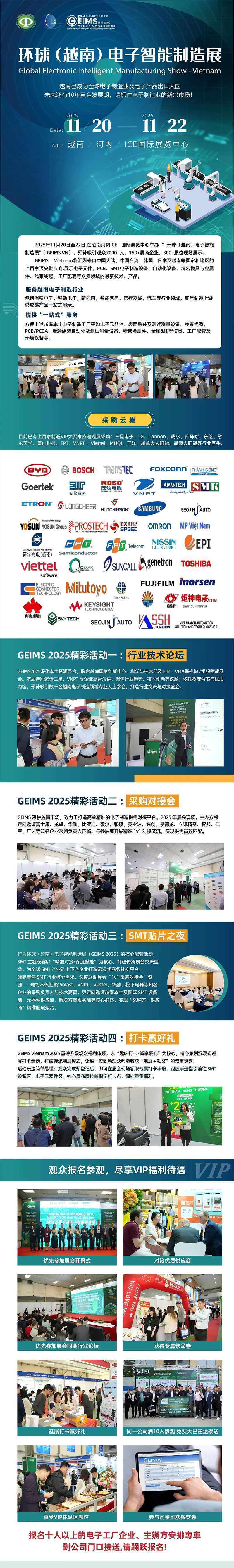 2025年11月20-22日,环球(越南)电子智能制造展在河内ICE国际展览中心举办,同一公司或同一园区报名超十人以上,可以安排大巴车接送,欢迎与我们联系!