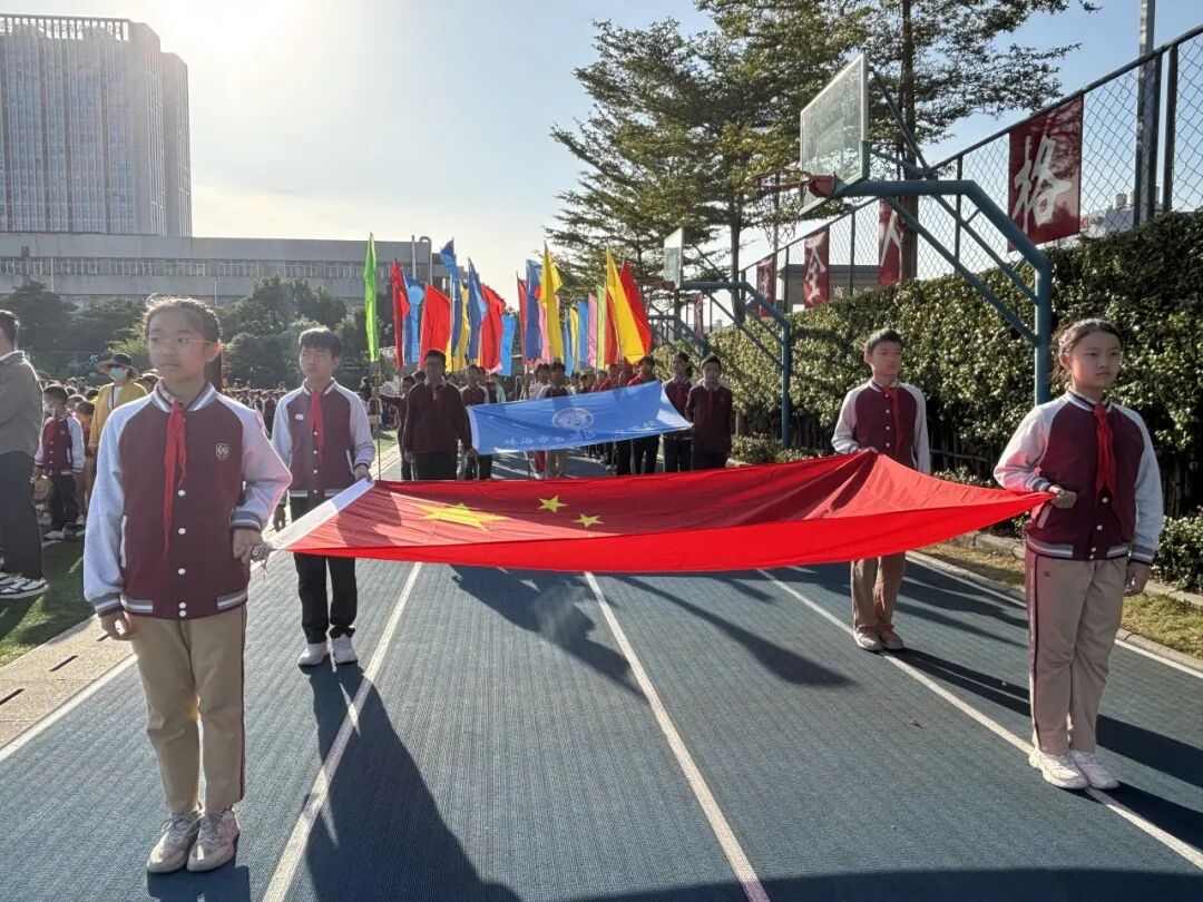 晨光熹微,彩旗招展。11月26日上午,造贝学校第十五届校园运动会在雄壮的运动员进行曲中正式拉开帷幕。开幕式上,运动员代表和裁判员代表分别庄严宣誓,承诺恪守体育精神、公正执裁。张国泉副校长发表热情洋溢的致辞,勉励同学们在赛场上挥洒汗水、展现风采。随着王原全校长宣布运动会开幕,各班级方队迈着整齐的步伐入场,每个方队都带来了精心准备的表演——有的手持花球翩翩起舞,有的变换队形创意十足,充分展现了造贝学子的青春活力。