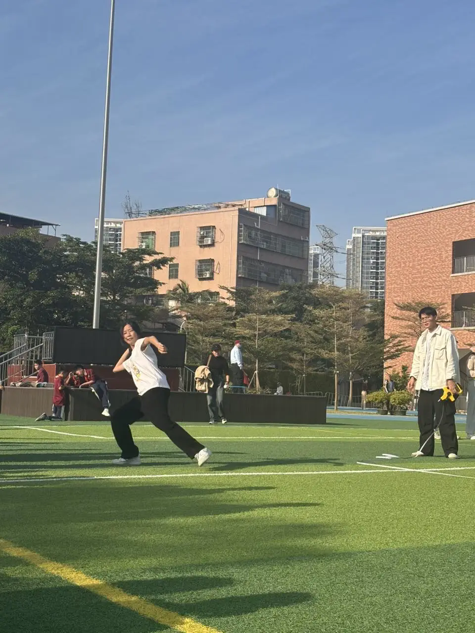 开幕式后,王原全校长为60米短跑打响了第一枪,标志着比赛正式开始。跑道上,运动员如离弦之箭;田赛场上,跳高选手不断挑战新高度,立定跳远选手奋力一跃,垒球在空中划出优美弧线;一分钟跳绳赛场绳影翻飞,4×100米接力更是将团队协作精神展现得淋漓尽致。整个运动场洋溢着青春的活力与拼搏的热情。