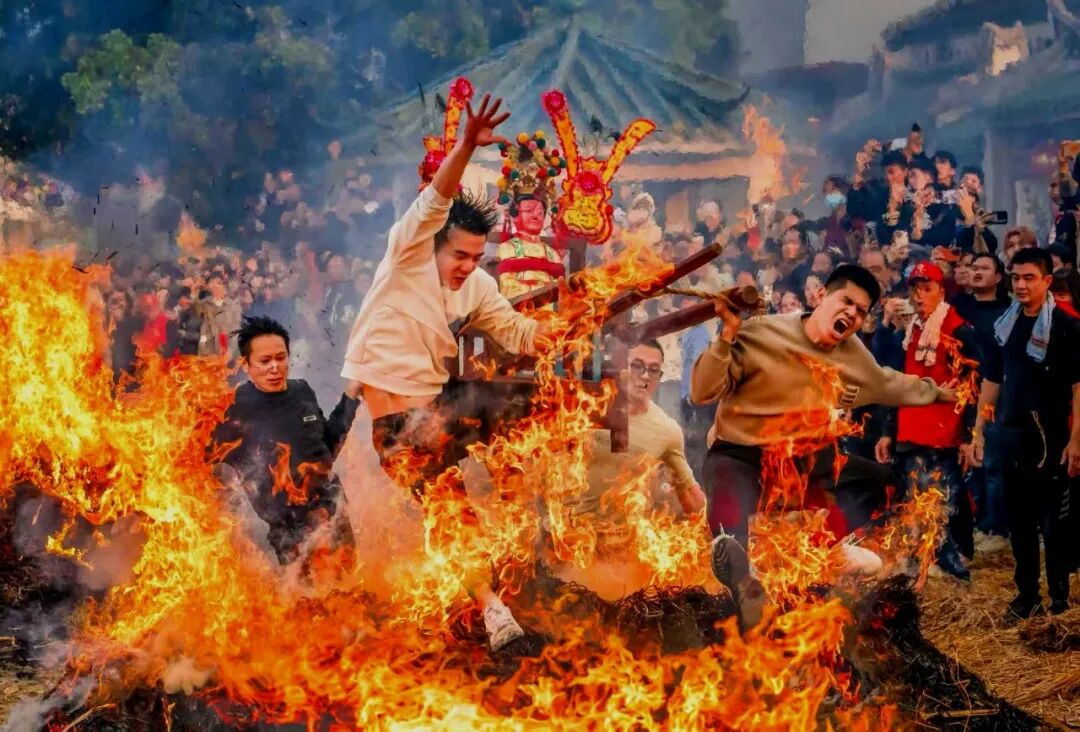 本期一版典藏刊登作品是摄影师 纪珊 拍摄的《典詹村“穿火”闹元宵》。这幅作品的关键词是:纪实摄影。