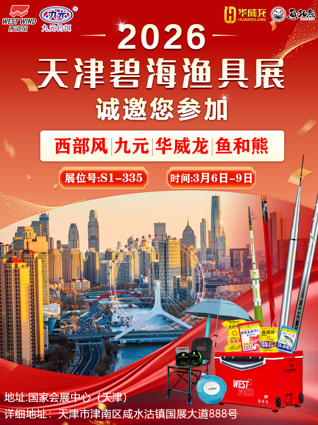 您好!非常感谢您长期以来对九元的大力支持!2026年碧海(中国)春季钓具产业博览会将于3月6日至3月9日在天津国家会展中心S馆举办,届时九元将携全新产品亮相展会,现诚邀广大新老客户及嘉宾朋友们莅临展会参观交流!