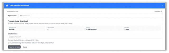 此次更新核心变化为:超过1GB的下载请求将通过电子邮件发送,替代原网站直接下载模式。用户提交请求后,系统后台处理文件,无需等待即可继续工作,待处理完成后通过邮件获取文件。新流程可减少系统延迟与下载中断,以分块形式交付文件,提升下载稳定性。操作上,用户选择2个及以上文件点击“下载压缩包”,在“大型下载准备”区域输入邮箱、勾选确认理解分块交付后提交,将先后收到请求确认邮件与含下载链接的邮件,链接自接收起7天内有效。