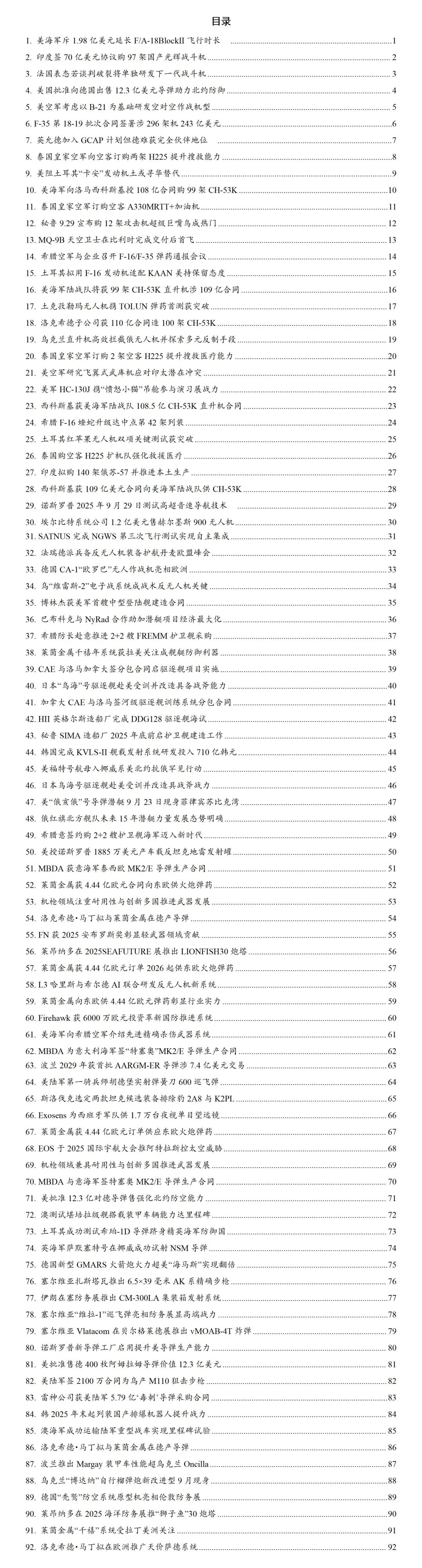《全球防务动态》系列专刊国内独家每日发布涵盖航天领域、武器装备、军事热点、人工智能、先进制造等领域的全球动态信息。提供航天动态专报装备动态专报军事动态专报智造动态专报以及航天防务新闻日报等特色产品模块工作日每日推送,形成结构化、可编辑的文档,供订阅用户在小程序智研烽火信息商城下载。每日及时的动态信息能够有支持各单位进行报送、军情研究与安全形势分析的需求。