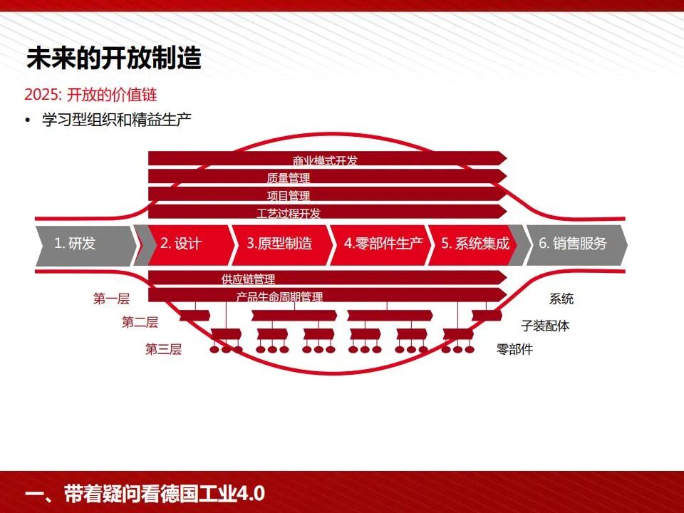 价值链坐标:工业4.0的核心在于动态配置的生产方式,这体现在产品开发、客户关系以及供应商管理等企业活动上。通过对价值链上的每一个环节进行优化,使得从设计到最终交付都能快速响应市场需求变化。
