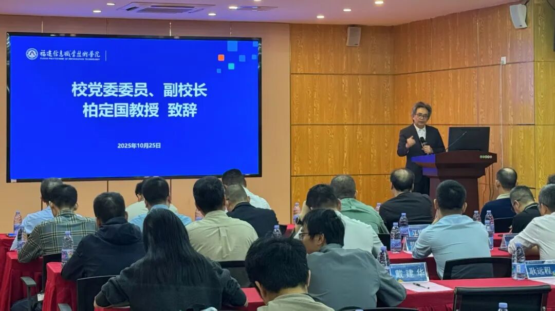 为精准对接智能制造产业前沿,全面提升技术技能人才培养质量,2025年10月25日,智能制造学院2025年产学研暨专业(群)建设指导委员会会议在龙腰校区社区教育与终身教育活动中心多功能厅成功召开。会议邀请来自福州大学、东南(福建)汽车工业股份有限公司等17位本科高校、高职院校、中职联办校、企业等专家参会。我校党委委员、副校长柏定国教授、智能制造学院党政领导班子及全体骨干教师参加会议。会议由智能制造学院副院长何建华主持。