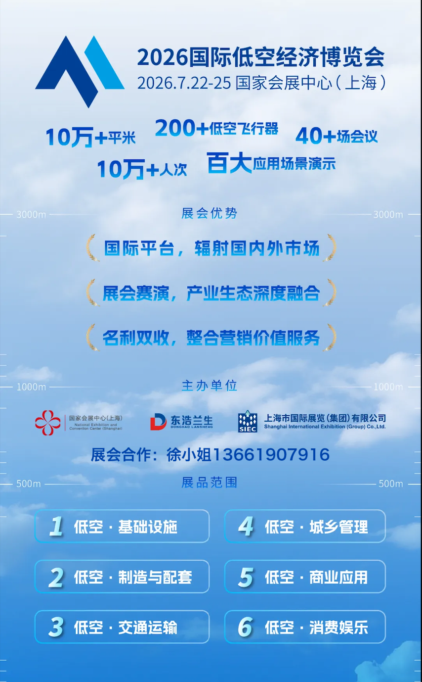 2026国际低空经济博览会由国家会展中心(上海)、东浩兰生集团和上海市国展集团共同主办,围绕低空经济这一战略性新兴产业的国际化专业博览会。