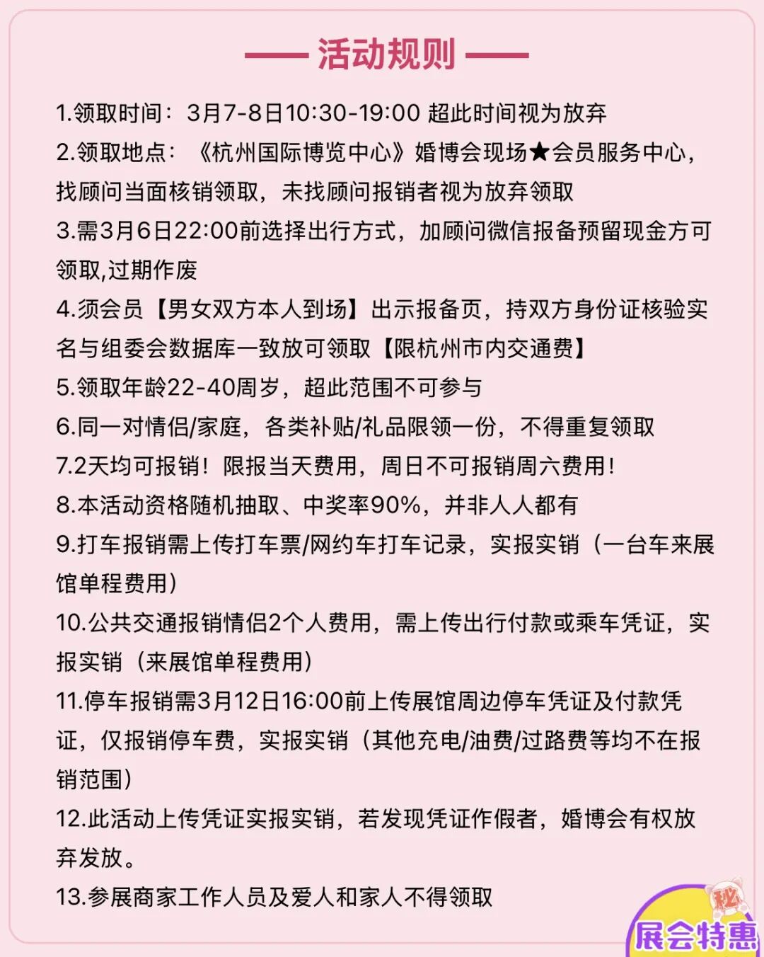 温馨提示:到展礼及停车补贴周五3月5日24点前预约可用~(索票后会收到短信提示,根据提示领取到展礼及交通补贴)或咨询微信客服:zhywt2025
