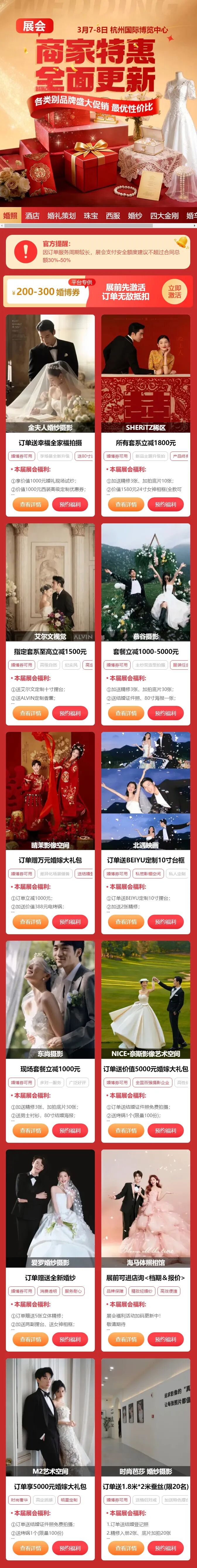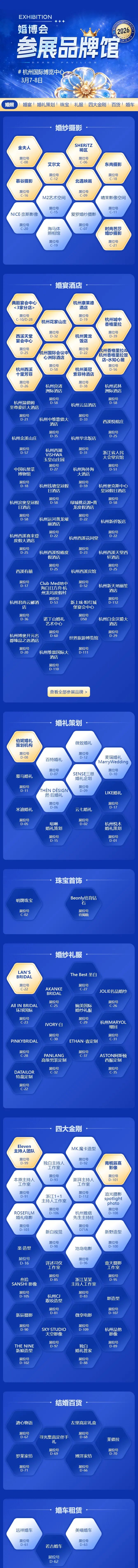 杭州婚博会展出品类包括:婚纱照、婚宴酒店、婚庆婚礼策划、四大金刚、婚戒三金五金、婚纱礼服、新郎西装、喜糖喜酒伴手礼、新婚家纺、婚车租赁……全都有,现场挑选、谈单、订单一站式全搞定!