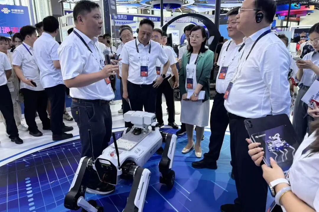 ▲现场工作人员正在讲解机器狗“吠云”的功能作用。
