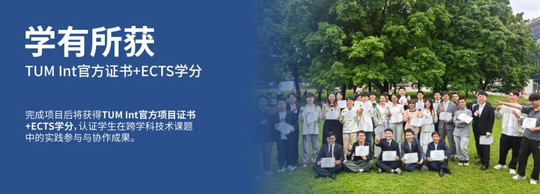 完成项目后将获得由TUM International颁发的官方项目证书,同时可获得1ECTS学分。