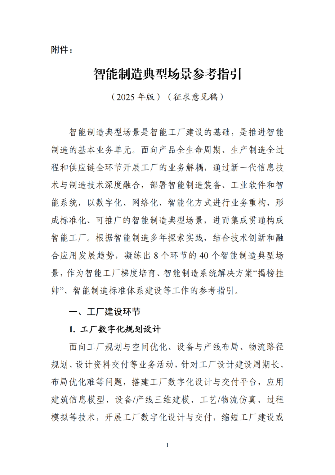 《智能制造典型场景参考指引(2025年版)(征求意见稿)》原文如下:
