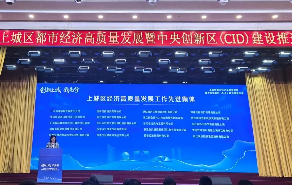 近日,杭州市上城区召开都市经济高质量发展大会暨中央创新区(CID)建设推进大会。会上,明日控股凭借在区域经济发展中的突出表现,被授予“2025年度上城区经济高质量发展工作先进集体”称号。
