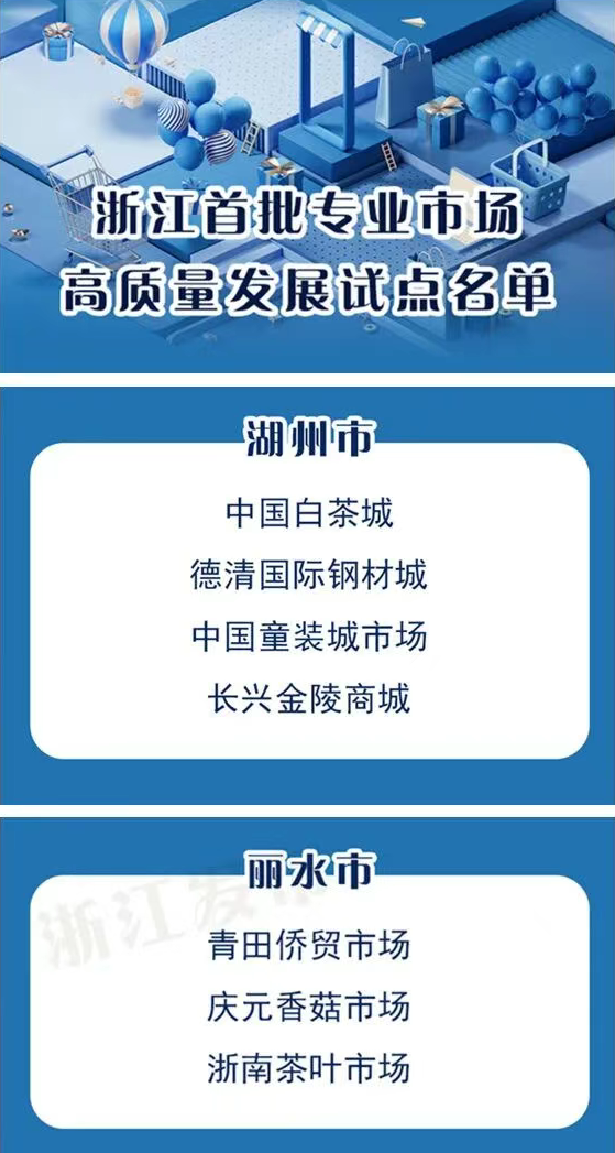 ●中国白茶城、庆元香菇市场入选浙江首批专业市场高质量发展试点名单